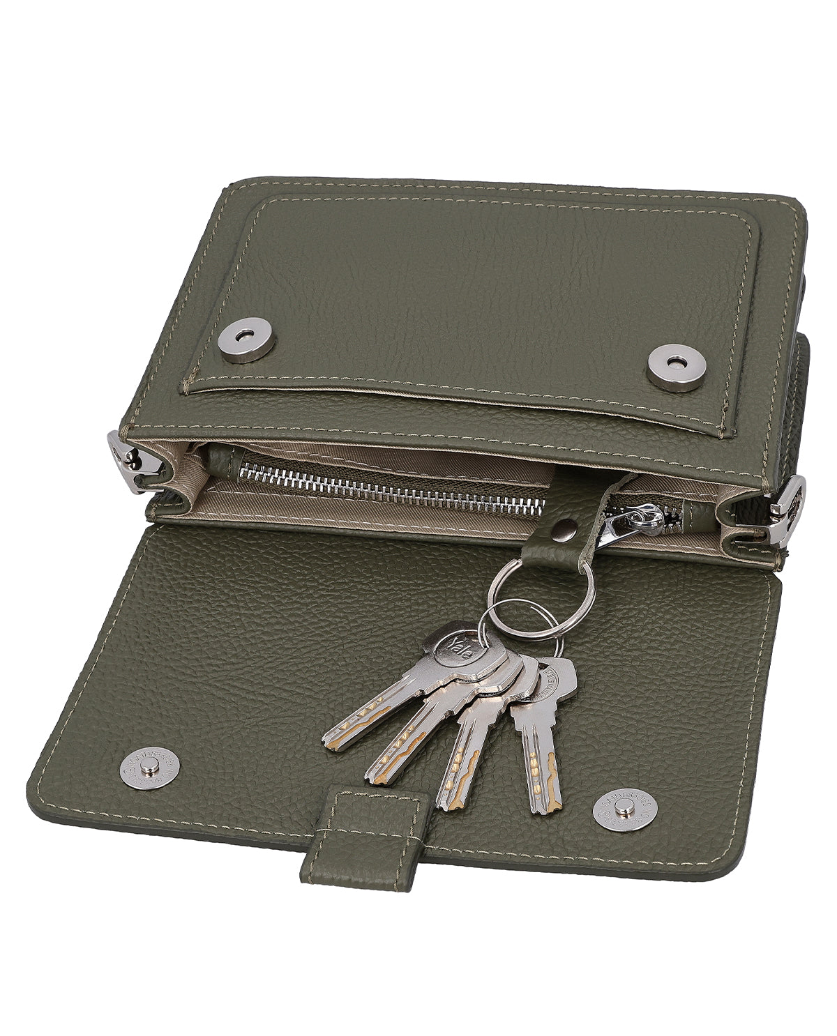 Inside, "Trude" impresses with its clever layout: a zippered compartment protects your valuables, while an integrated key holder keeps things tidy. The discreetly placed AirTag compartment is particularly practical, offering you additional security when you're on the go. A slip pocket allows quick access to essentials you want to have close at hand. The design is rounded off by a discreet engraving patch that allows you to personalize your bag. With "Trude," you are choosing a shoulder bag that harmoniously combines function, style, and individuality.