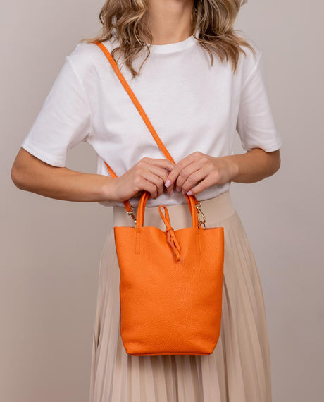 Storage bag organiser small leather bag womens orange leather - Made in Italy