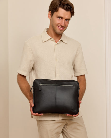- A leather briefcase for the office is a perfect choice. Briefcases made of smooth leather have a classic, elegant look, while models with a brushed surface have a rougher finish.