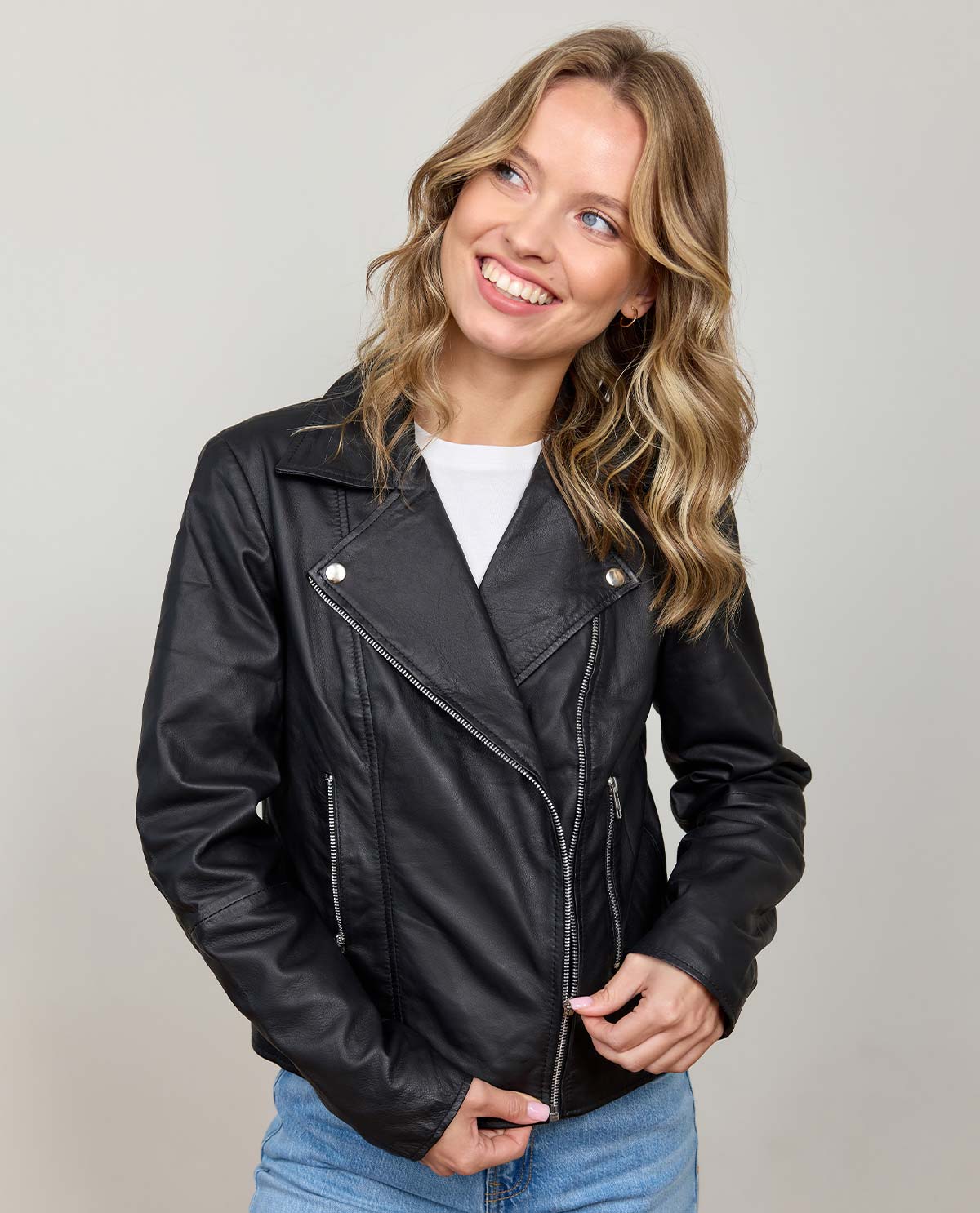 Lederjacke Bikerjacke Jacke Echtleder Damen Schwarz Leder