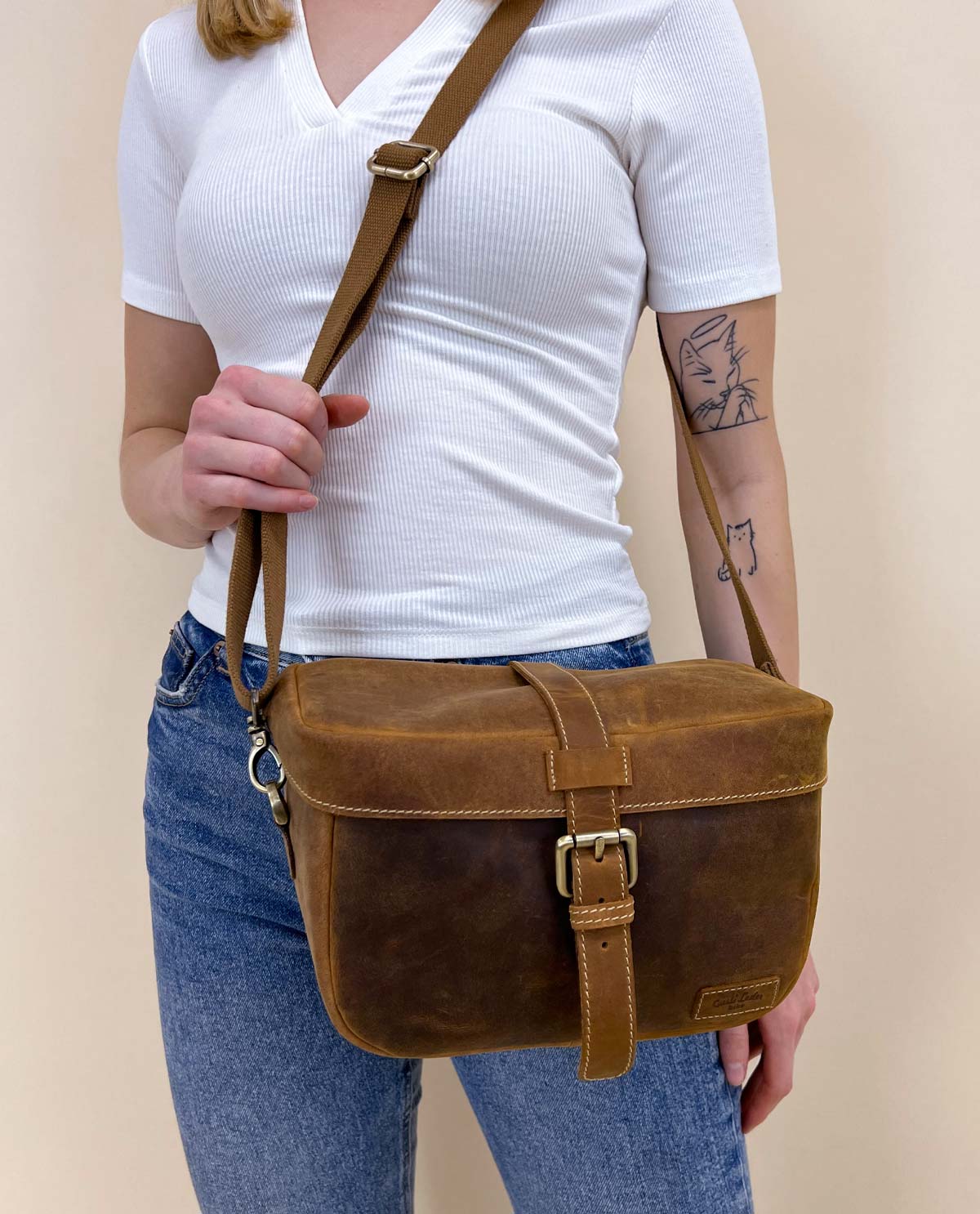 This beautiful and practical bicycle bag made of 100% genuine leather in a high-quality vintage look impresses not only with its design as a practical bag for everyday use but can also be attached to your handlebar in no time thanks to a -plate on the back of the bag. This way, you have all your belongings in sight and within reach even when riding (steel) horse. But don't forget to remove the adjustable shoulder strap before clipping the bag and store it in the bag - this way you significantly contribute to higher riding safety for yourself and other road users.