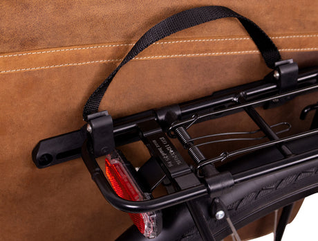 To keep "Rene P." particularly robust and stable, this functional bike bag is made of high-quality processed buffalo leather and can be quickly attached to your handlebar using a plate. Other visual highlights include the adjustable shoulder strap and the magnetic closure straps in the thorn buckle style. Inside, the handlebar bag is equipped with waterproof polycotton, which reliably protects your belongings. With a capacity of about 5 liters, "Rene P." offers enough space for a water bottle, bike lock, bicycle lock, phone, and notebook. Do you want to convert the bike bag into a shoulder bag? Just remove it, and you have a stylish leather favorite in a tin style.