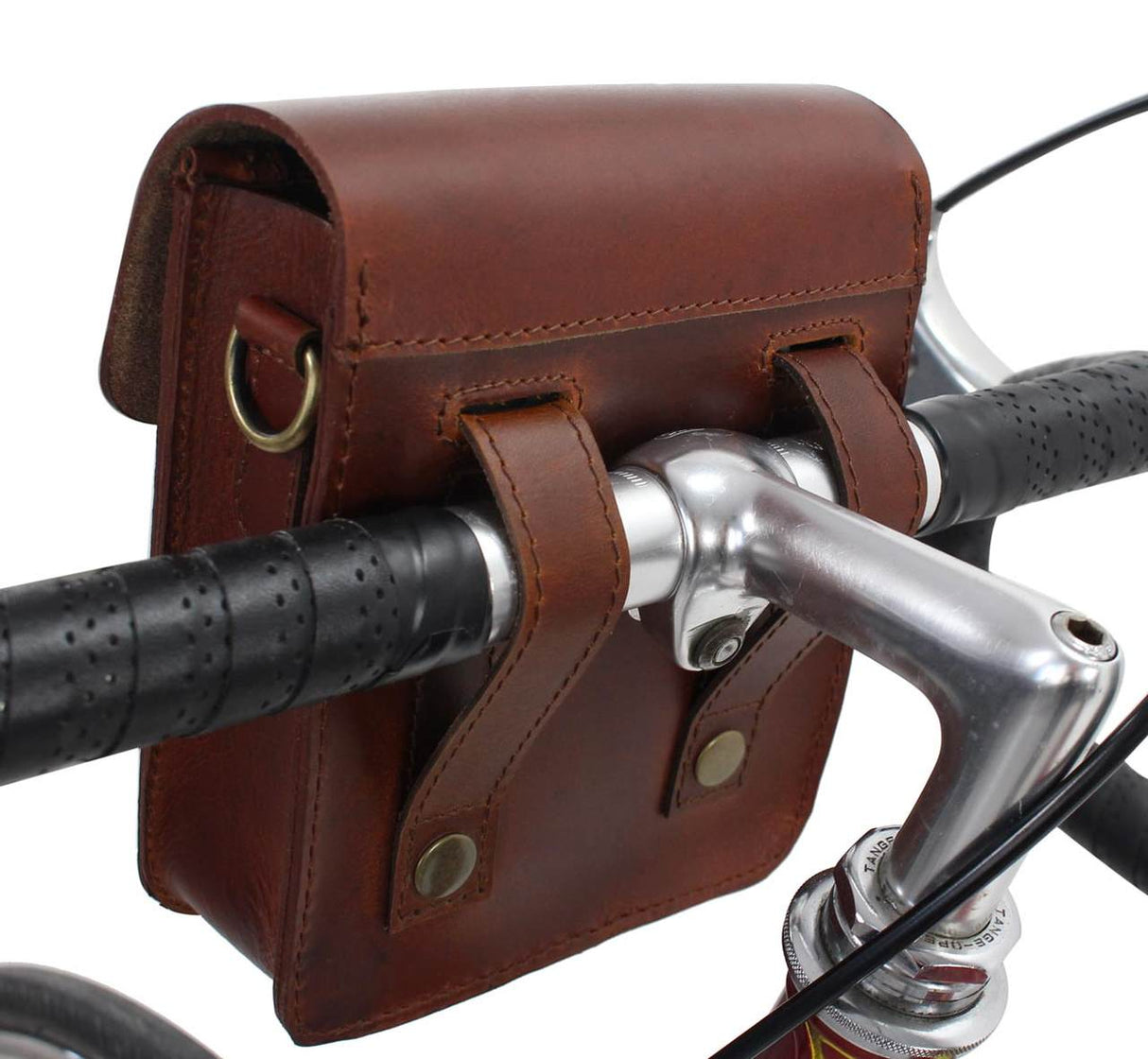 Handlebar bag satchel shoulder bag belt bag belly bag bike bag bicycle bag vintage leather bag brown leather