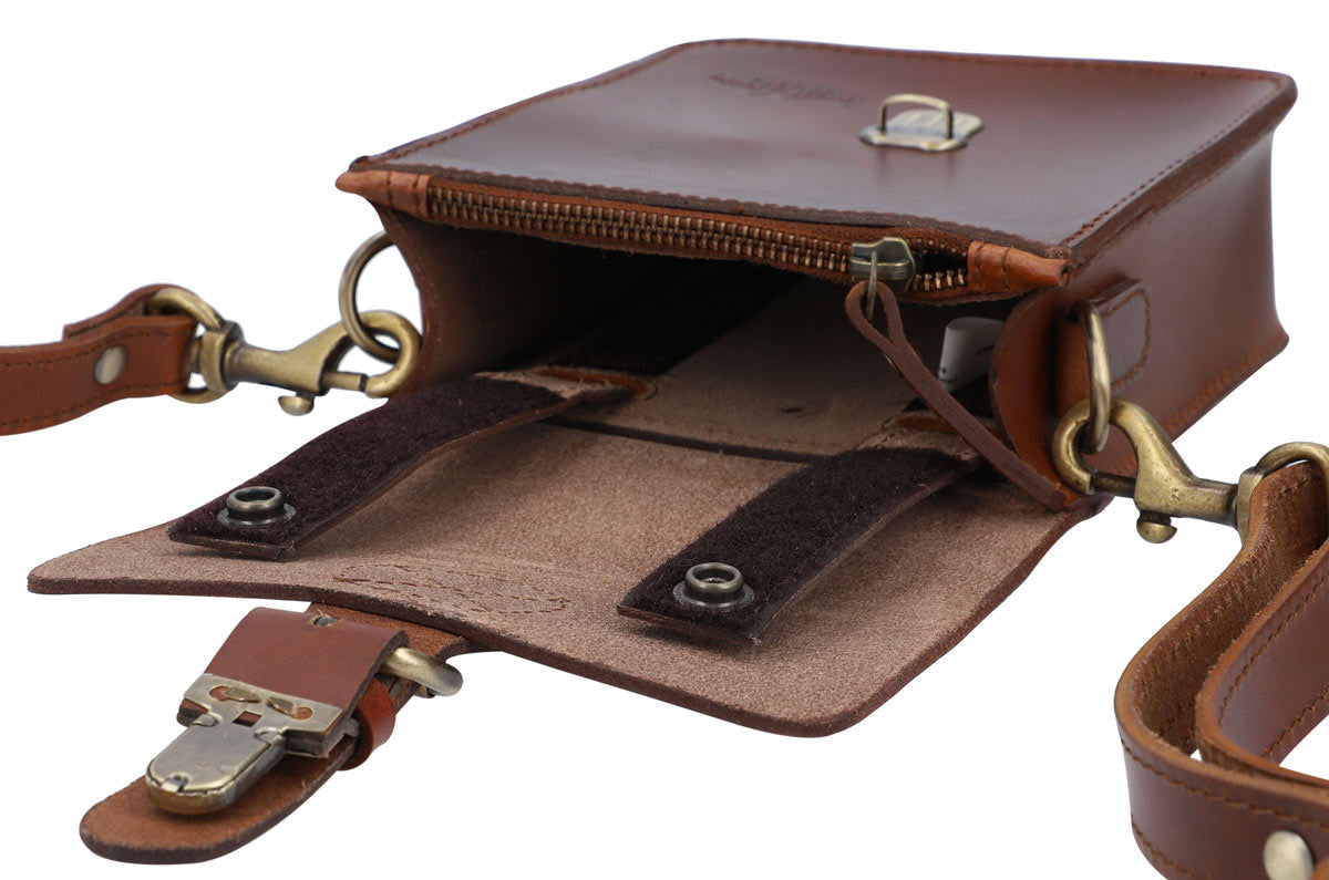 Your new leather companion is made of sturdy, high-quality process buffalo leather and will win you over with its trendy satchel style. “Cadel E.” is perfect to use as your day-to-day bag and can be attached to your handlebars quickly and easily using the straps on the back. The main compartment has more than enough space for your wallet or purse, phone and keys. The zipped pocket on the front of the bag provides you with a space to keep your smaller items. So, you'll always know where your things are. Secure this handlebar bag using the push lock and head off on an adventure.