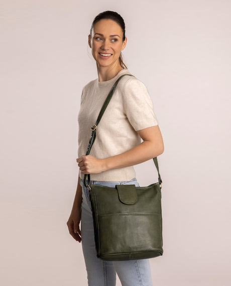 Storage bag organiser small leather bag womens green leather - Made in Italy