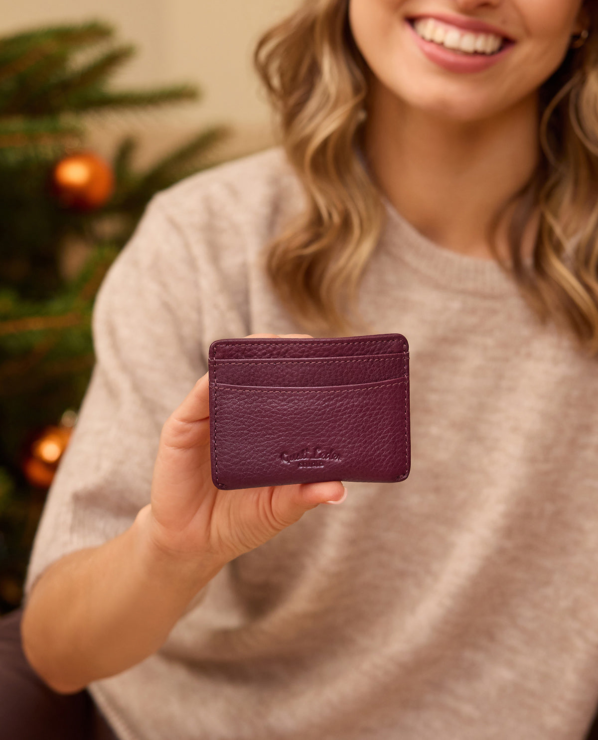 Practical and stylish – the "Qani" card case made of purple leather