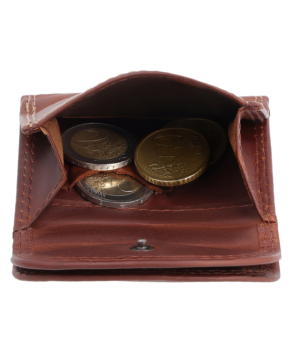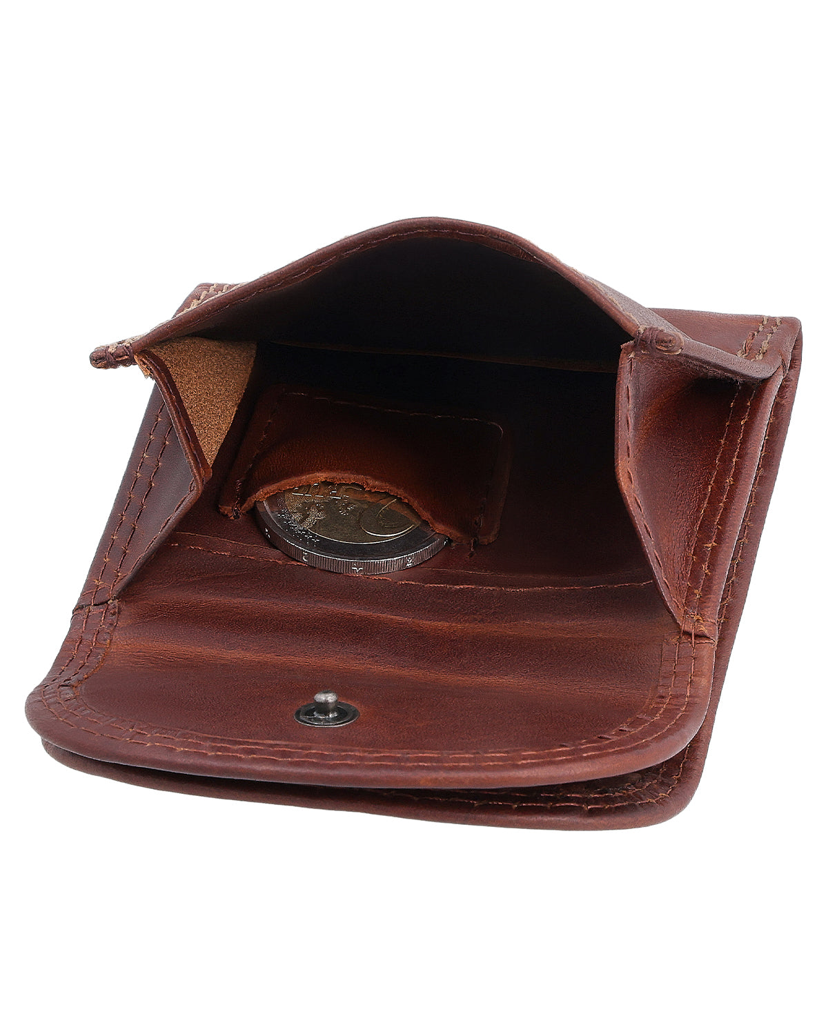 The robust yet soft, high-quality tanned leather fits comfortably in your hand. Super flat, "Leif" fits in any pocket. Your bills can be easily stored in a small side compartment, and there is a compartment for coins inside – secured with a snap fastener. Particularly practical: a small coin compartment for a single coin, e.g., for the shopping cart, so you have it quickly to hand. With its contrasting decorative stitching and double semi-circular closure, "Leif" also looks elegant. To cater to every taste, "Leif" is available in different colors. Pure minimalism!