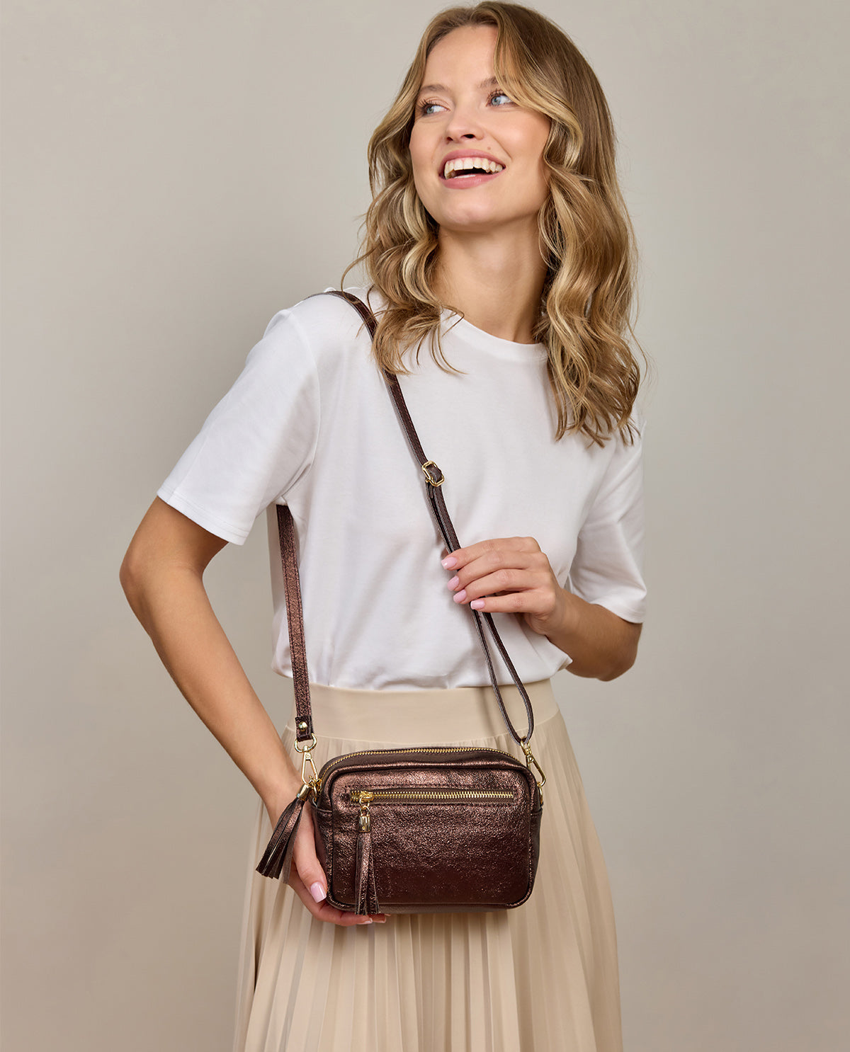 The "Cariba" shoulder bag made from high-quality leather is the ideal companion for any woman who appreciates both style and practicality. With its secure zipper closure, you can safely store your valuables, while the elegant zipper pull adds a special touch to the bag. Its simple yet striking appearance makes it the perfect accessory for everyday use and special occasions. "Cariba" combines noble design with thoughtful functionality – a must-have for every outfit.