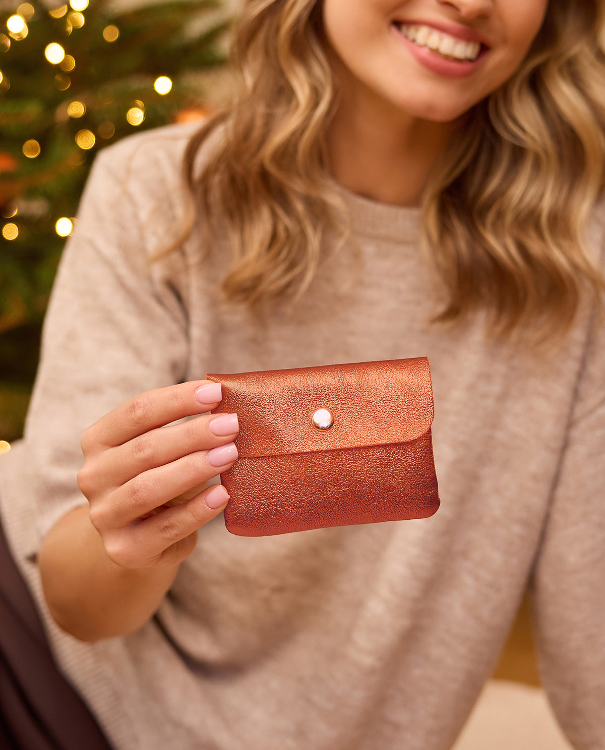 Storage bag wallet purse organiser women shiny brown leather - Made in Italy