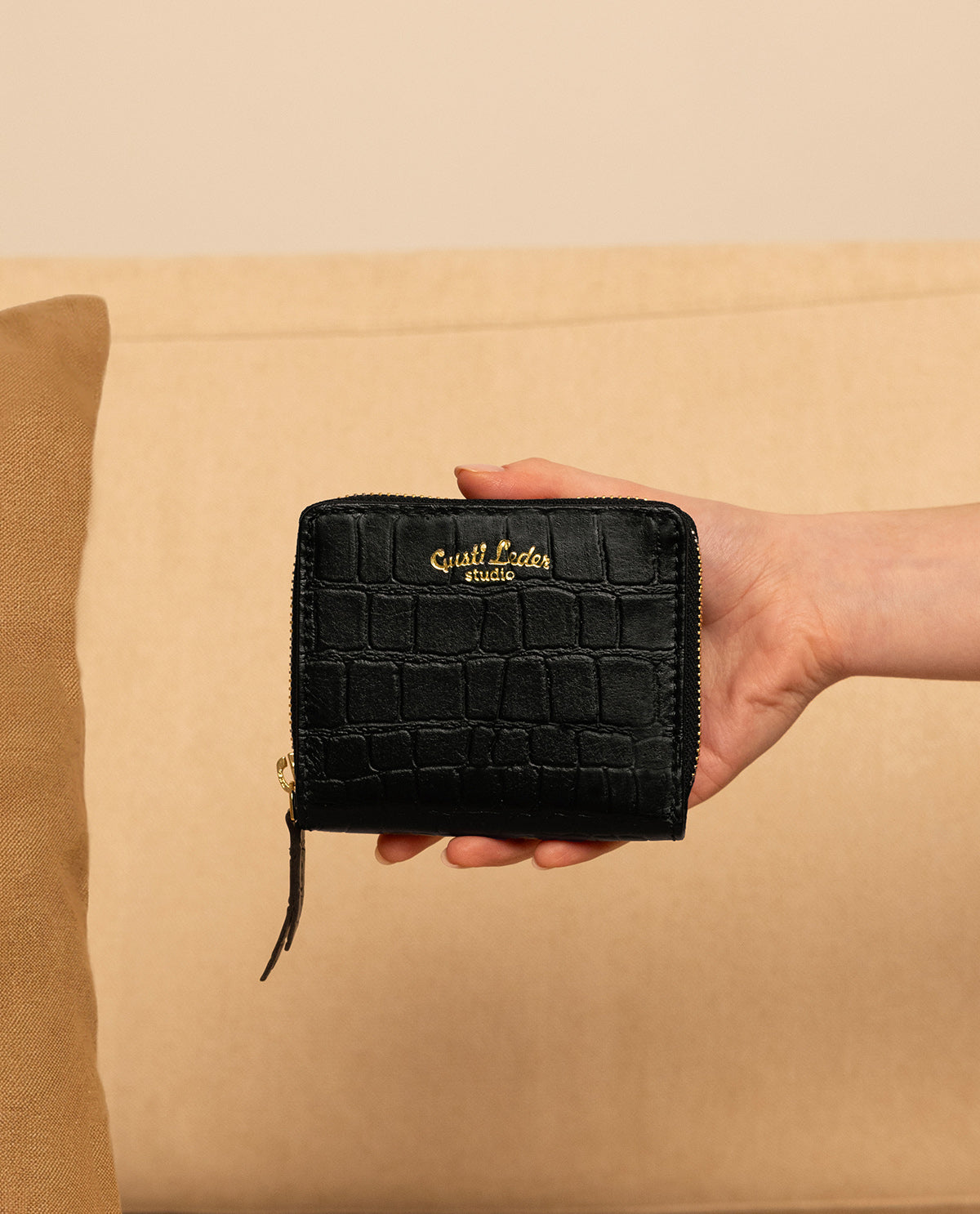 Are you looking for a classic purse that has enough space for your cards and an extra-large coin pocket? Then you’ll love our trendy crocodile-skin purse “Monika”! She’s suitably stylish and super functional.