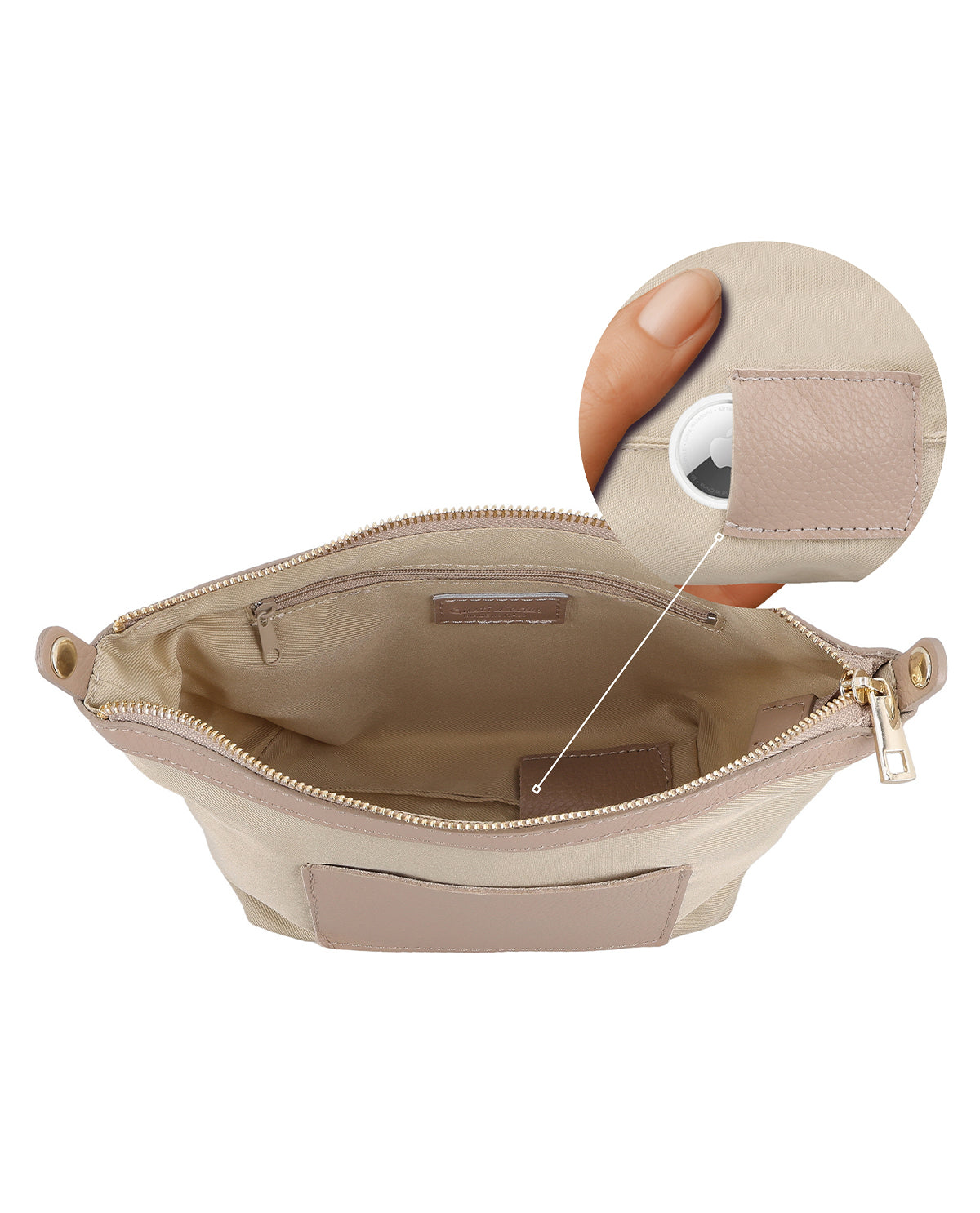 Shoulder bag with airtag pocket and detachable keychain - Made in Italy