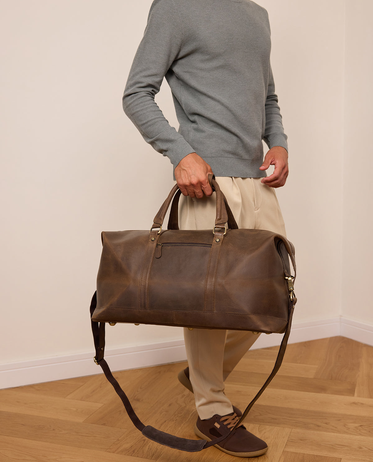Have you got a weekend trip coming up but you don't want to take a huge suitcase with you? Then we recommend our travel bag “Ruben”. The thick leather is sturdy and has a high-quality finish which means “Ruben” can be your travel companion for years to come. The simple vintage design speaks volumes about this travel bag, which is sure to turn heads at train stations and airports around the world. This leather bag always looks chic and casual.