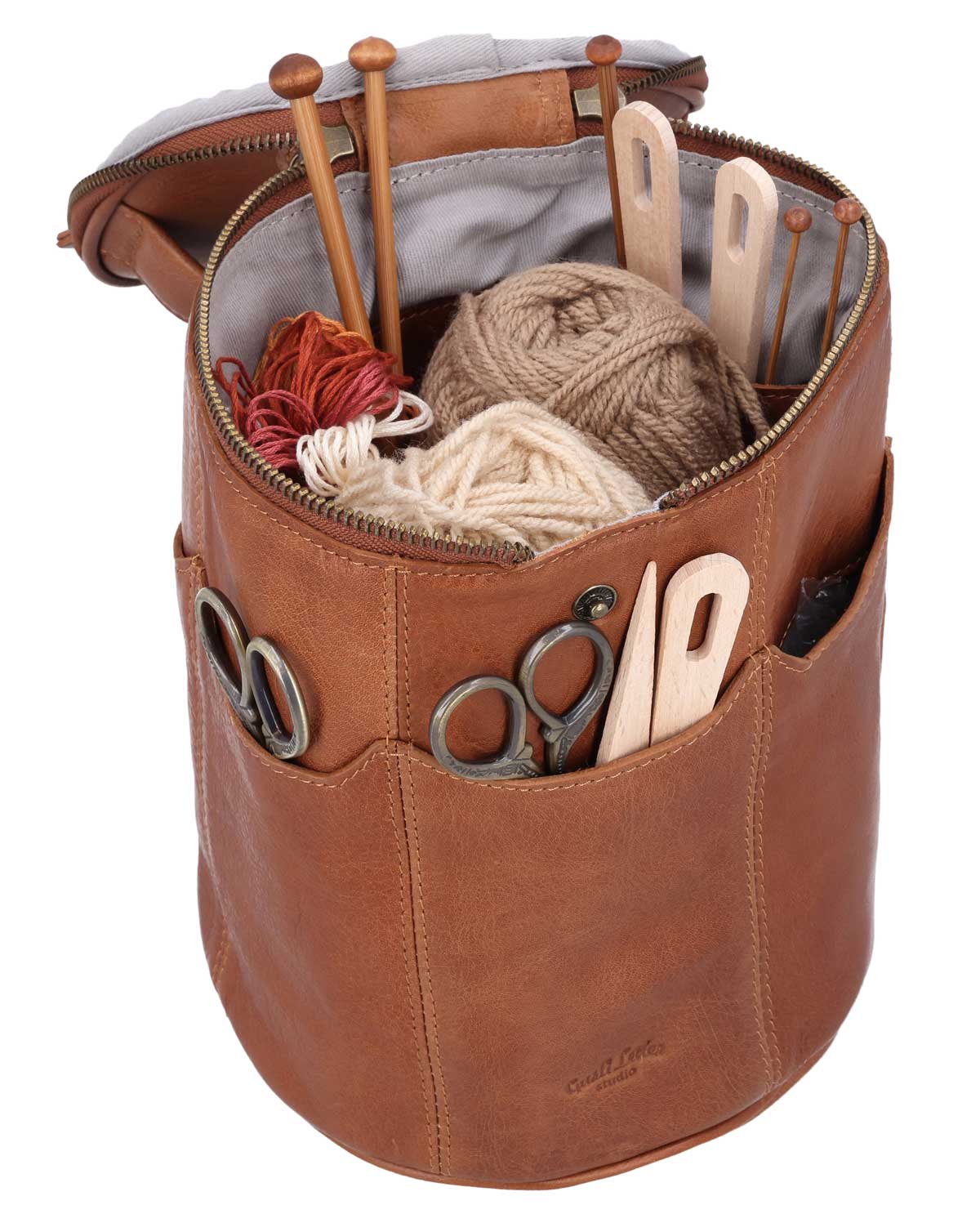 Praktisch und stilvoll – die "Corvin" Strick- und Häkeltasche aus Leder