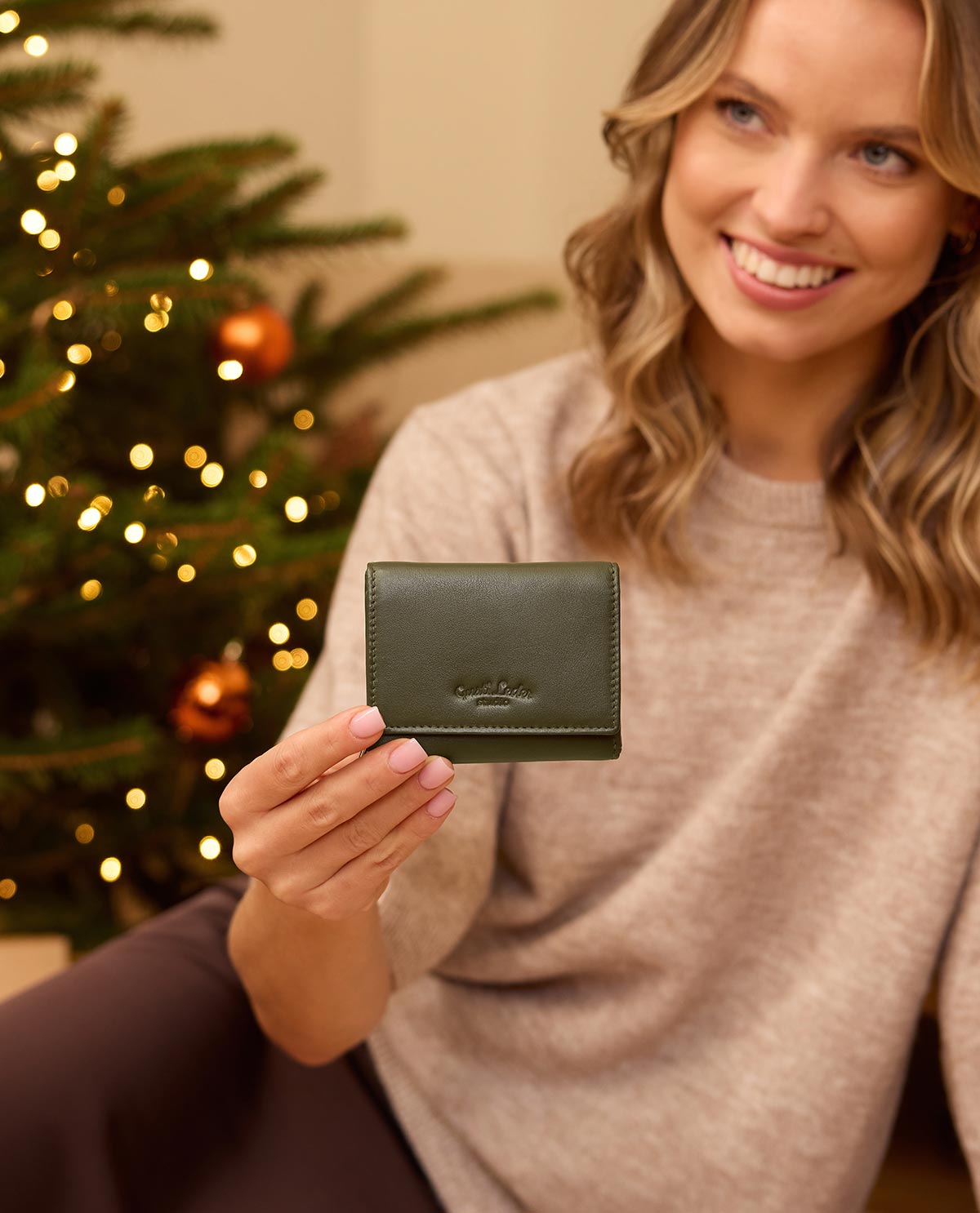 Geldbörse Mini Portemonnaie klein Geldbeutel Damen Herren Grün Leder
