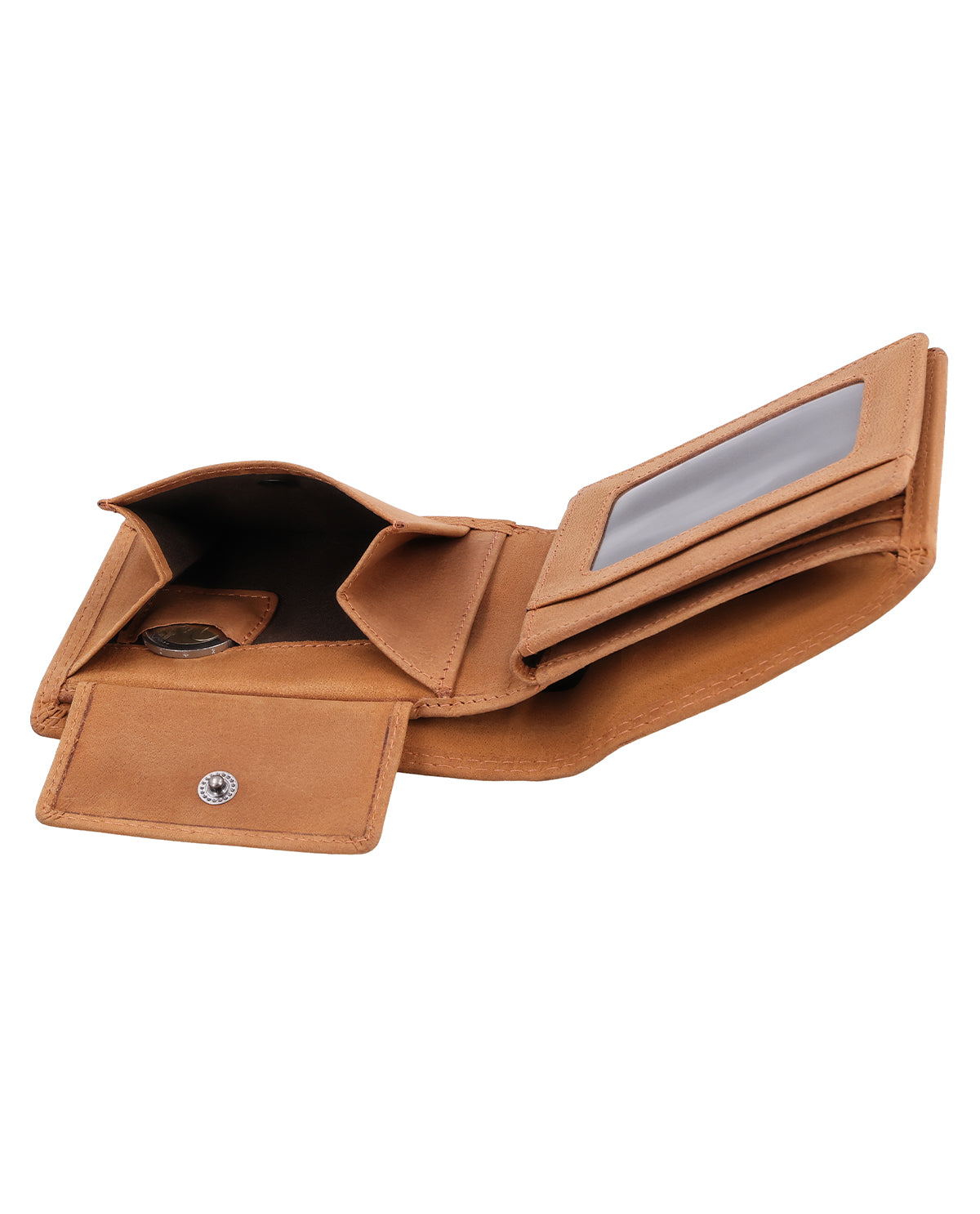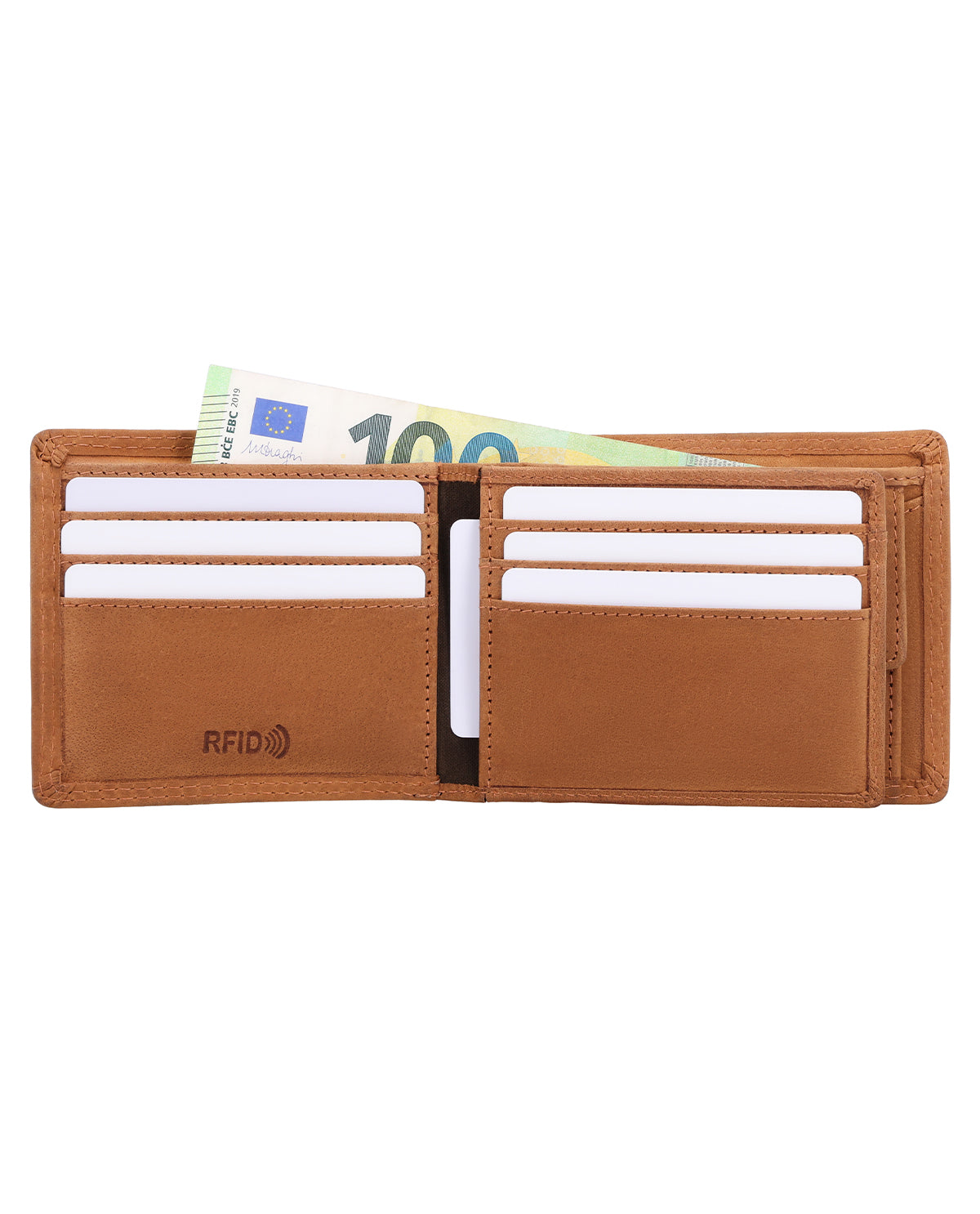 Unsere Geldbörse "Foster" kommt im klassischen Look daher. Aus robustem Leder gefertigt, ist "Foster" ein lebenslanger Begleiter. Fix aufgeklappt, findest Du darin mindestens sechs Fächer für Deine Geldkarten. Deinen Ausweis kannst Du in einem transparenten Fach unterbringen. Ein separates Scheinfach sowie ein sicheres Münzfach mit Druckknopf sorgen dafür, dass alles ordentlich verstaut bleibt. Besonders hochwertig: Die Kartenfächer sind so verarbeitet, dass Leder und Innenfutter umgeschlagen und vernäht werden, sodass das Innenfutter nicht herausreißen kann, wenn Du Deine Karten herausnimmst. Zusätzlich findest Du im Inneren ein dezentes Gravurpatch, das Deinem Portemonnaie eine persönliche Note verleiht.