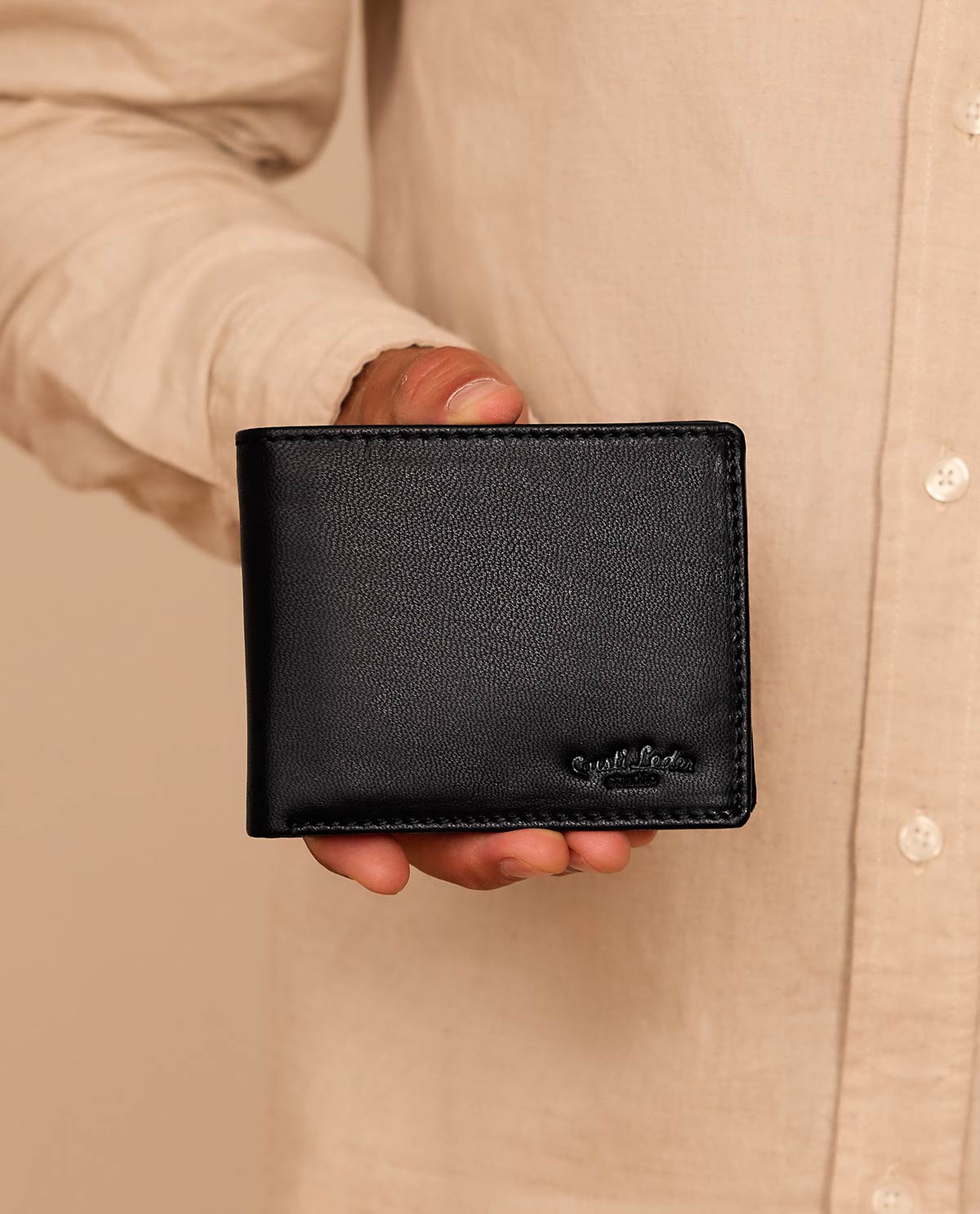 Portemonnaie Geldbörse Geldbeutel Herren Schwarz Leder