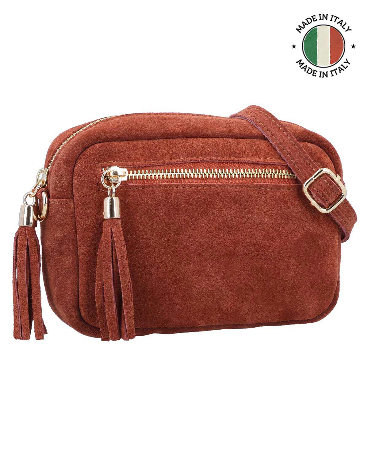 Umhängetasche Ledertasche Handtasche Crossbody Tasche Damen Braun Leder - Made in Italy