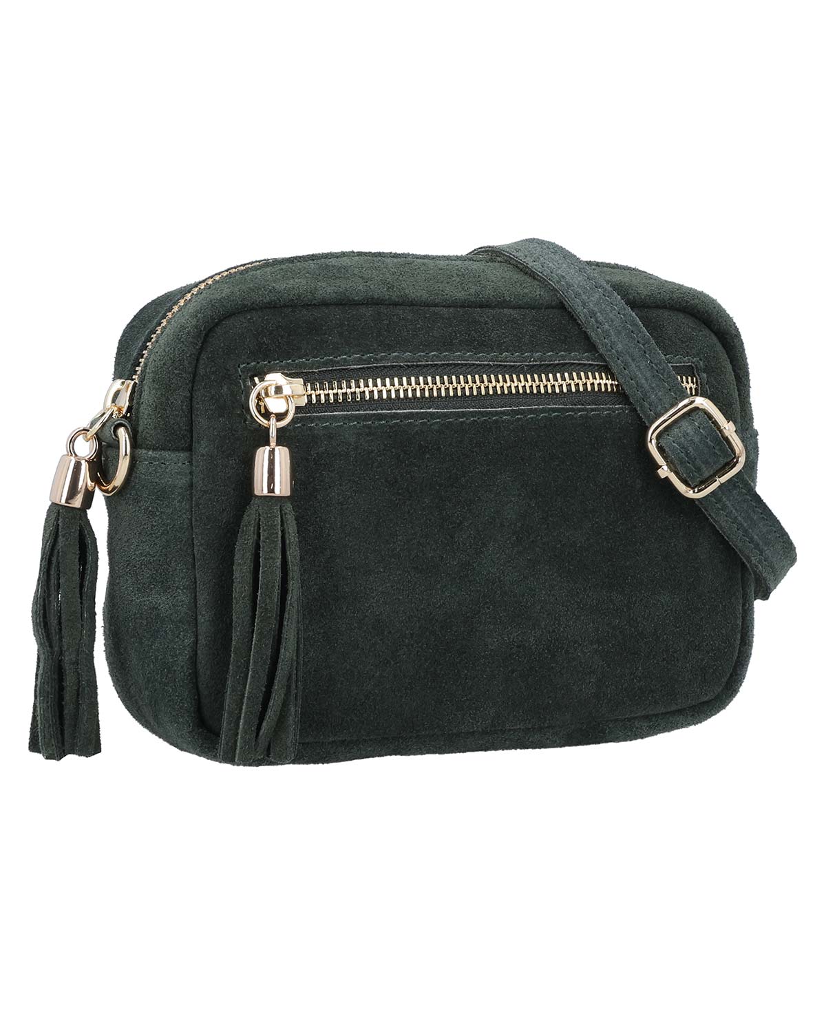 Umhängetasche Ledertasche Handtasche Crossbody Tasche Damen Dunkelgrün Leder - Made in Italy