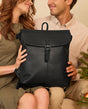 Kurierrucksack Lederrucksack mit Reißverschluss und Schnalle Diebstahlsicher Damen Herren Designed in Berlin Schwarz Leder
