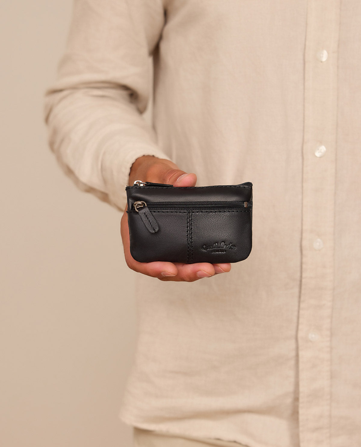 Schlüsseltasche Portemonnaie Geldbeutel Schlüsseletui Schwarz Leder