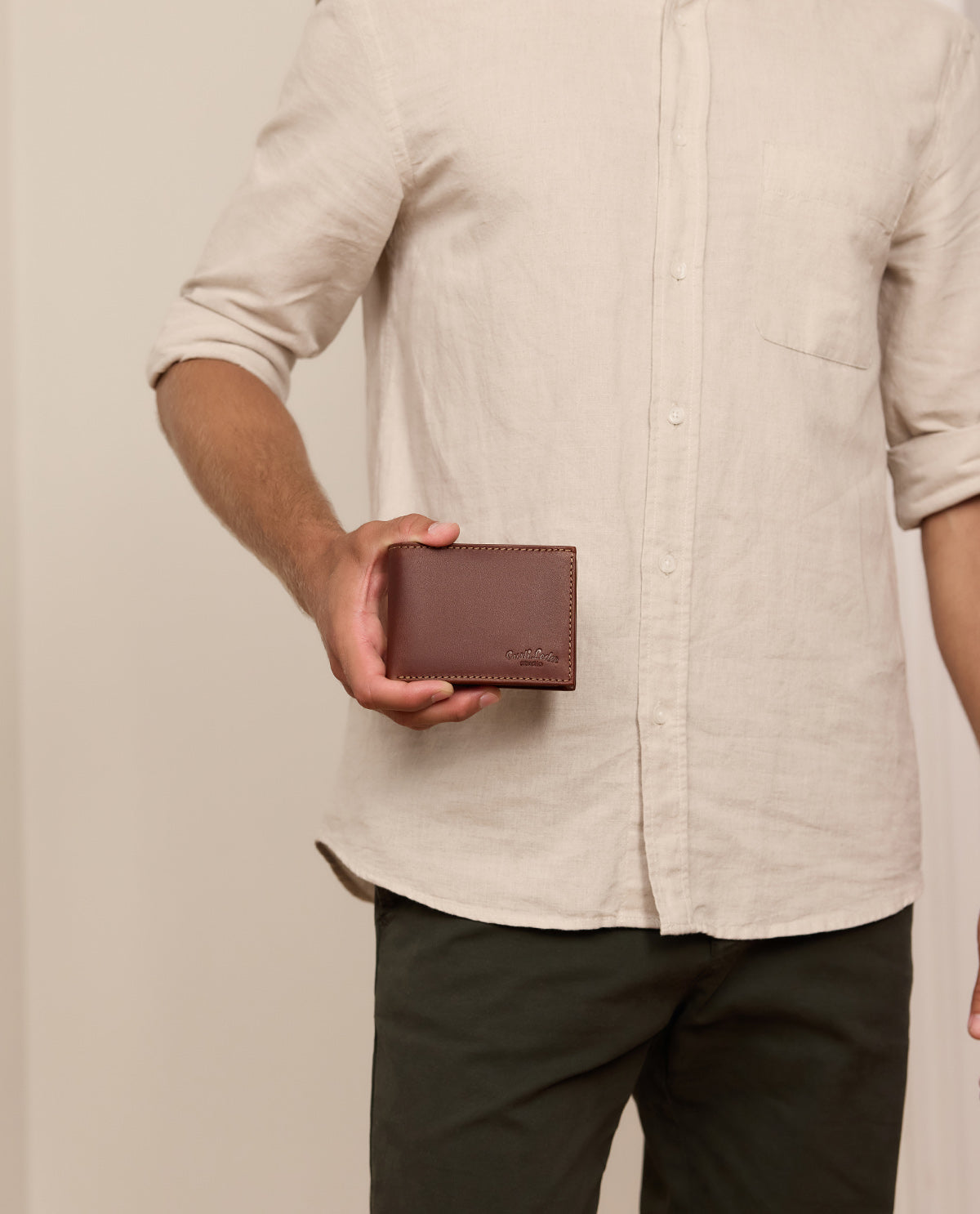 Pflanzlich gegerbt Geldbörse Portemonnaie Brieftasche Geldbeutel Herren Braun Leder