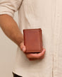 "Arjen" ist eine dreigeteilte Geldbörse, die Platz für mindestens sechs Karten, dein Kleingeld und Scheine bietet. Das Kleingeldfach in der Mitte lässt sich durch einen Druckknopf verschließen, sodass nichts hinausfallen kann. Die Kartenschlitze an den Seiten bieten Platz für Ec-, Kredit- Versicherungs- und jegliche Kundenkarten. Hinten ist ein großes Fach für deine Geldscheine angebracht. Das Schließen erfolgt einfach durch Zusammenklappen, so bist du schnell an deinem Geld. Durch das robuste Ziegenleder kann "Arjen" dich lange begleiten und strahlt eine gewisse Natürlichkeit aus, die dieses Portemonnaie zu etwas Besonderem macht.