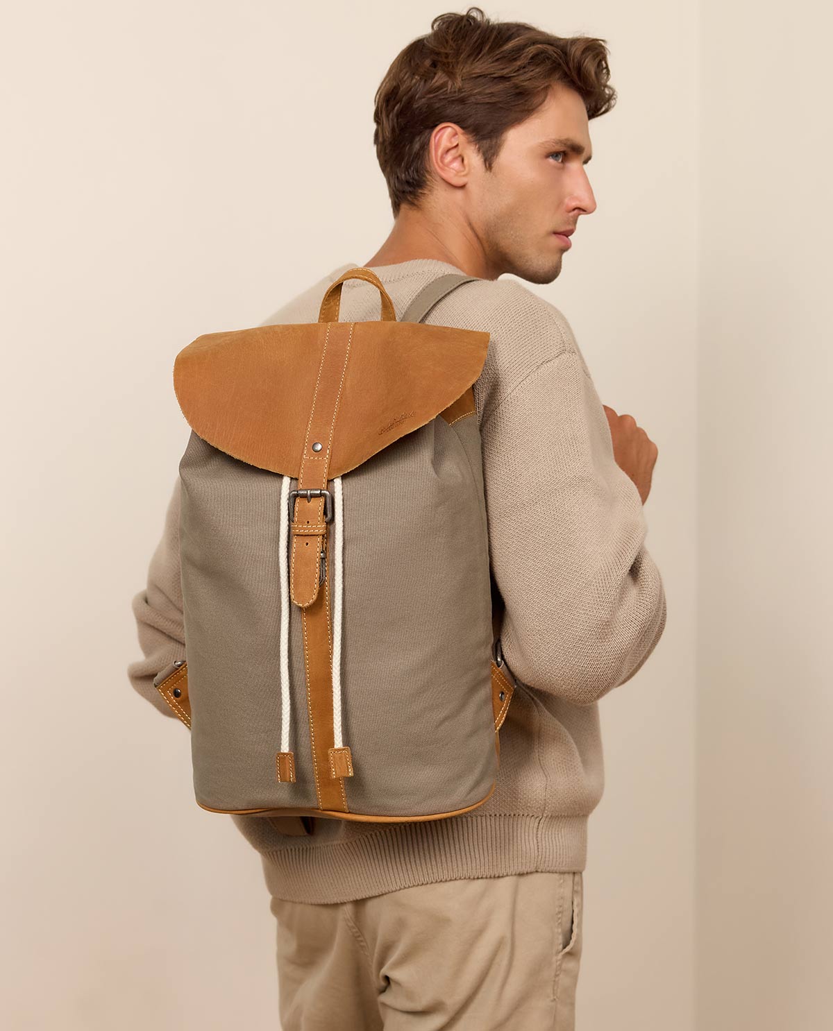 Rucksack groß Cityrucksack Collegerucksack Unirucksack Daypack Schultasche Laptoptasche Outdoorrucksack Laptoprucksack Lederrucksack Grau Canvas & Leder