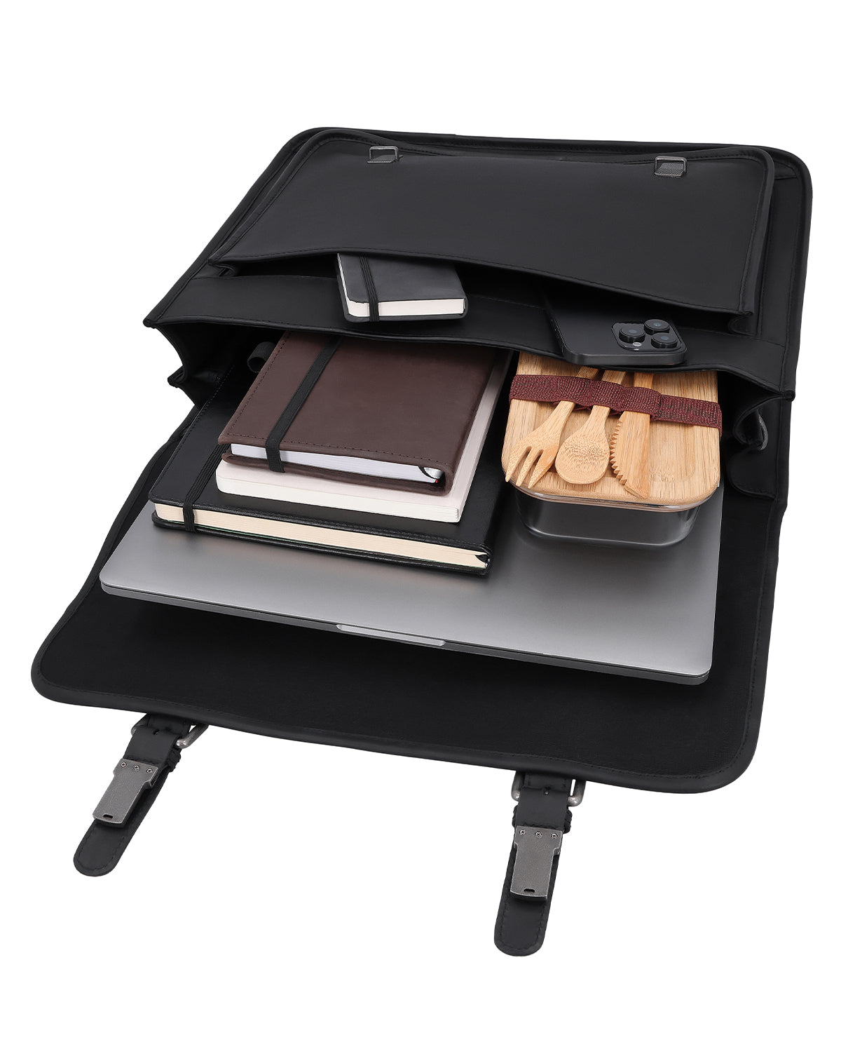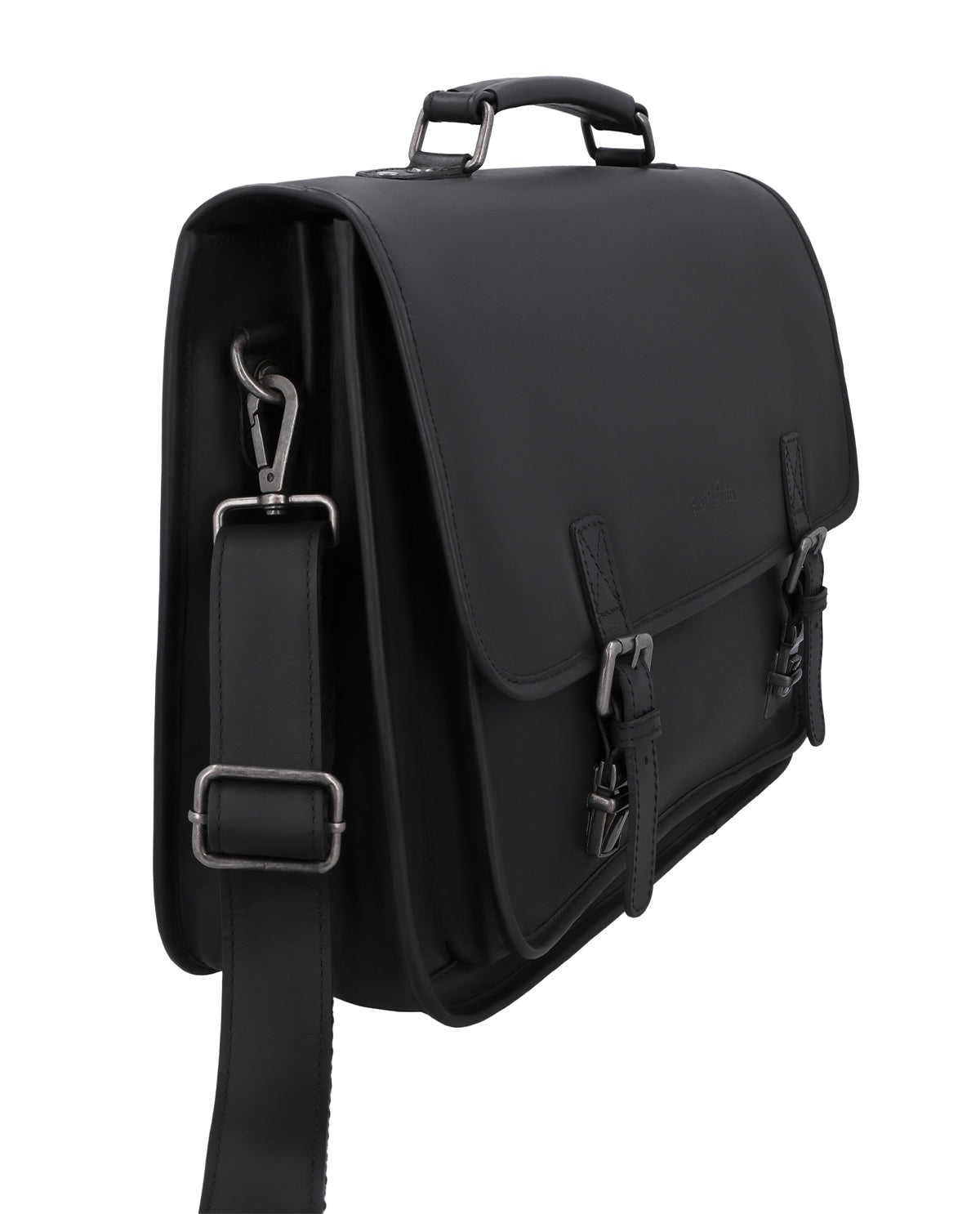 Im Inneren sorgen zwei Steckfächer und ein Reißverschlussfach für Übersicht, ergänzt durch praktische Stiftehalter, die Deine Arbeitsutensilien griffbereit halten. Ein zusätzliches Reißverschlussfach außen ermöglicht schnellen Zugriff auf wichtige Unterlagen oder Dein Smartphone. Der Schulterriemen ist verstell- und abnehmbar und passt sich Deinem Alltag flexibel an. Ein Gravur-Patch bietet Raum für Personalisierung, während die klare Aufteilung diese Aktentasche aus Leder zu einem strukturierten, verlässlichen Begleiter im Berufsalltag macht.