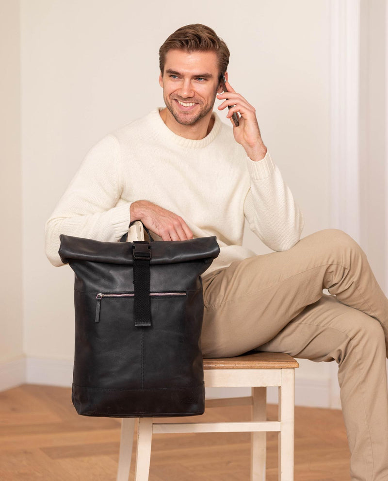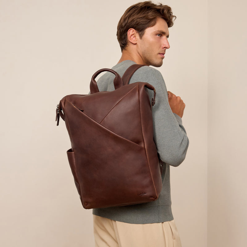 In diese Lederrucksäckepasst alles rein, was Dein Papa braucht