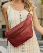 Freya“ ist eine echte Platzheldin unter den Bauchtaschenund bietet durch ihr Haupt- und Nebenfach viel Platz für Deine wichtigsten Utensilien. Aus hochwertig gegerbten Büffellederlässt sich „Freya“ nicht nur angenehm anfassen – die beiden großen Reißverschlussfächer bieten genügend Platz für Handy Schlüssel, Geldbeutel, A5 Notizbuch und alles was du noch an Souvenirs vom nächsten Festival noch mitnehmen willst. Sie besticht im angesagten Vintage-Look und mit ihrer natürlichen Ausstrahlung. Du möchtest „Freya“ mit einer Widmung versehen? Kein Problem! Im Inneren wird dafür extra ein Lederpatch angebracht, wo du einen Namen oder einen kurzen Text eingravieren lassen kannst. Probier es doch mal aus!