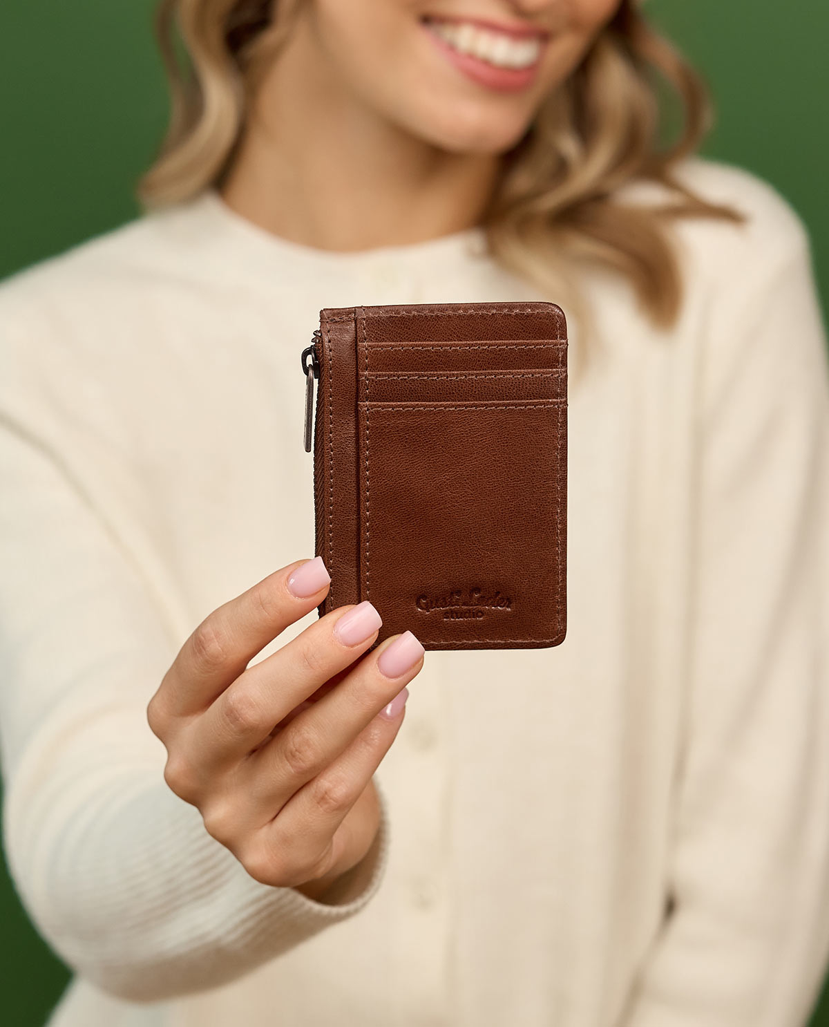 Das "Arlan" Portemonnaie ist mehr als nur ein praktisches Accessoire – es ist ein stilvoller Begleiter, der Dein Leben organisiert. Gefertigt aus hochwertigem braunem Leder, besticht es durch seine schlichte Eleganz und hervorragende Verarbeitung. Die edle braune Farbe und die feine Textur des Leders machen es zu einem zeitlosen Klassiker, der sowohl in der Tasche als auch in der Hand einen bleibenden Eindruck hinterlässt.