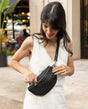 Das hochwertig verarbeitete Rindsleder im fancy Kroko-Look sorgt für den ersten Hingucker, während die raffinierte Gurttechnik mit zwei Karabinerhaken eine außergewöhnliche und stilvolle Alternative zu herkömmlichen Schnappverschlüssen bietet. In „Rosamonde“ finden Smartphone, Portemonnaie und Schlüssel einen sicheren Platz – und die bewundernden Blicke gibt’s gratis dazu.