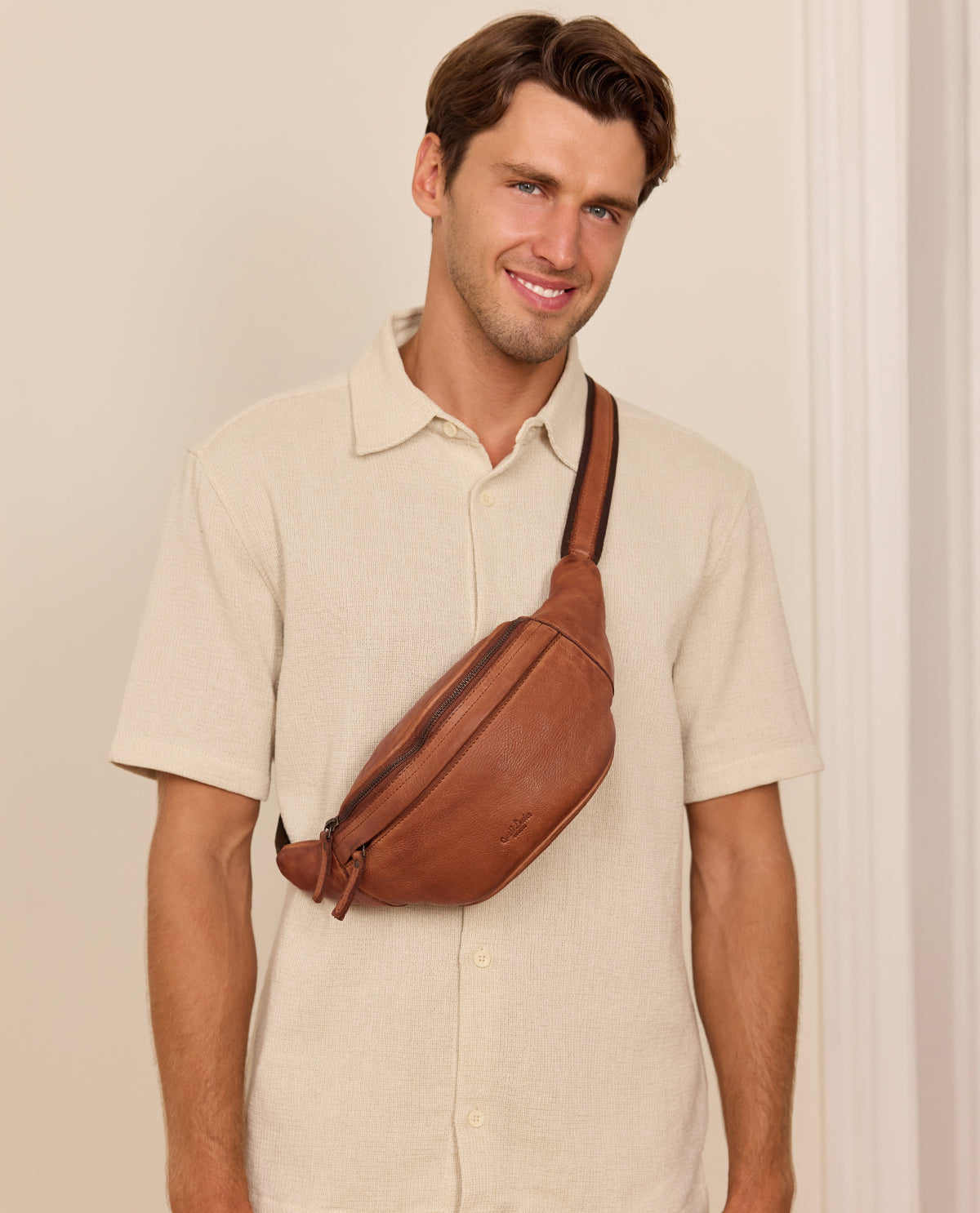 Unsere Gürteltasche „Spencer“ macht nicht viel Aufhebens um sich, sondern überzeugt durch seinen reduzierten unaufgeregten Look, seine Qualität und seine Funktionalität. Das robuste und qualitativ hochwertig verarbeitete Rindsleder verleiht der Gürteltasche die nötige Formstabilität, während seine zahlreichen Reißverschlussfächer genügend Platz für Deine Essentials bieten, ohne die Du auf den ganzen Festivals oder einfach auch beim nächtlichen Getümmel in der Stadt schlichtweg aufgeschmissen wärst. Der erfahrene Festivalgänger und der passionierte Konzertbesucher werden die Qualitäten von "Spencer" wohlwissend zu schätzen wissen. Denn Portemonnaie, Smartphone und Schlüssel passen ganz problemlos hinein - und noch so einiges mehr. Der längenverstellbare Gürtel dieser Bum Bag ist außerdem mit einem stabilen Schnappverschluss ausgestattet, sodass Du "Spencer" wahlweise um die Hüfte oder als Cross Body-Bag tragen kannst. Frei nach dem Motto: "Spencer" ist unkompliziert. "Spencer" ist praktisch. "Spencer" ist einfach gut.