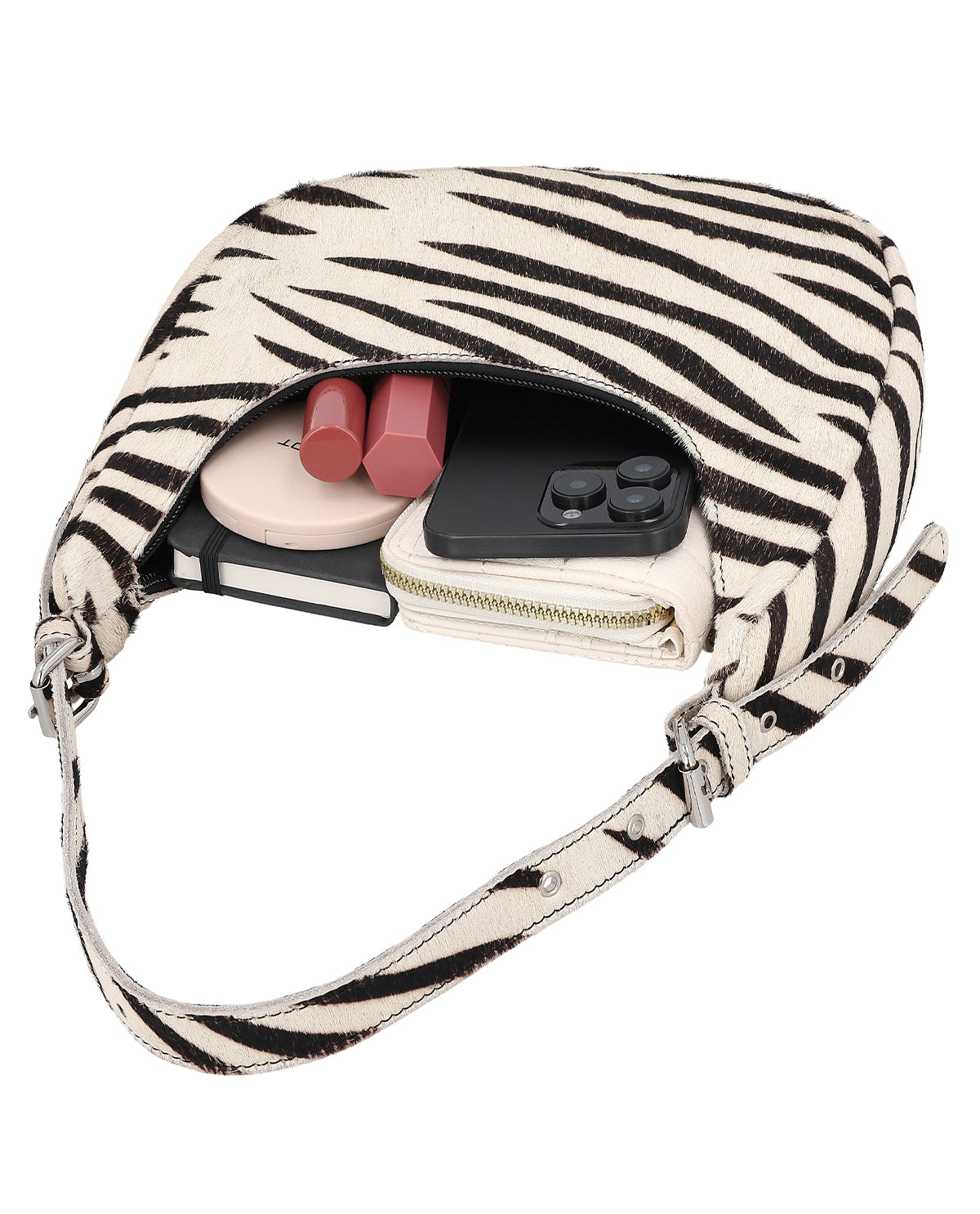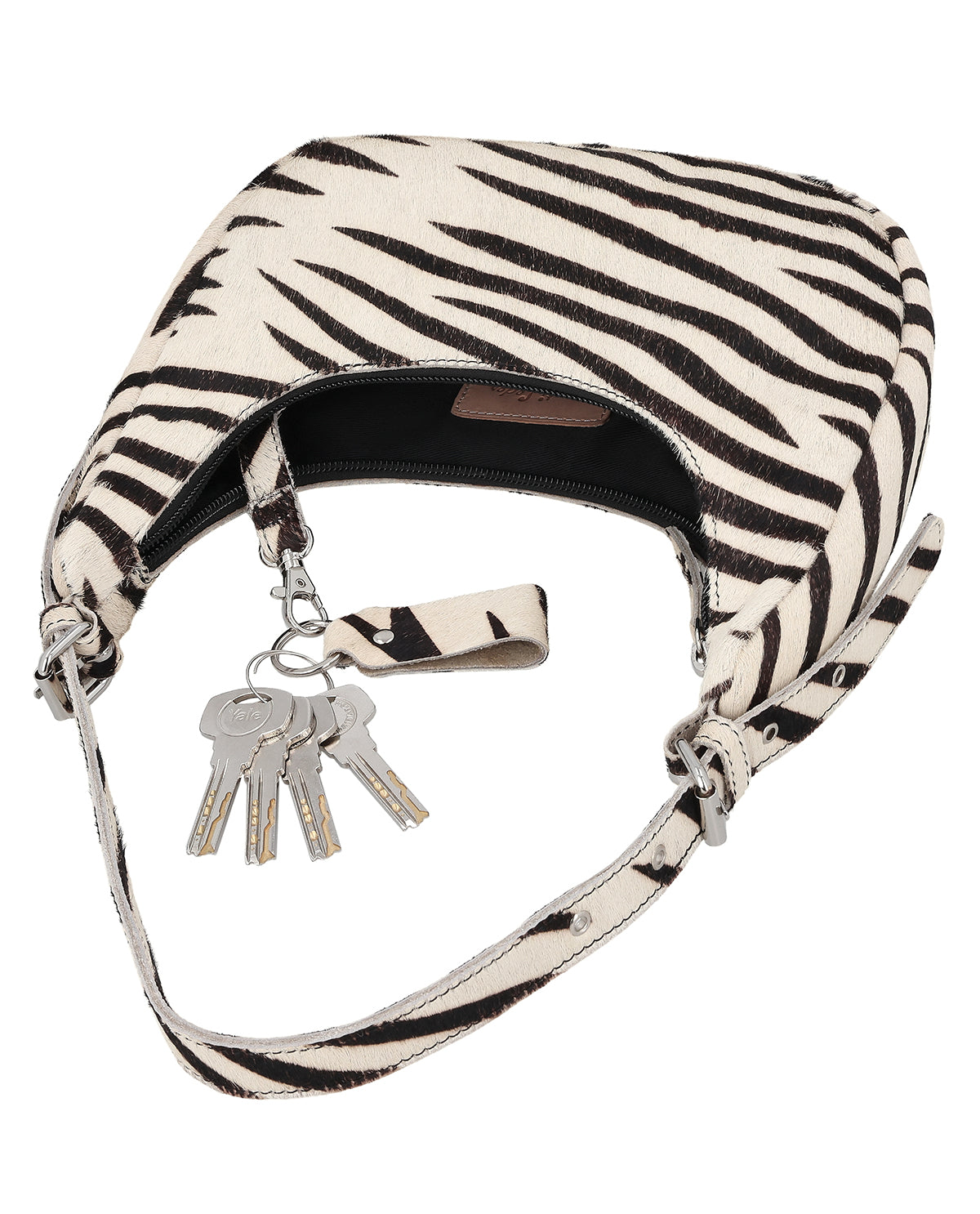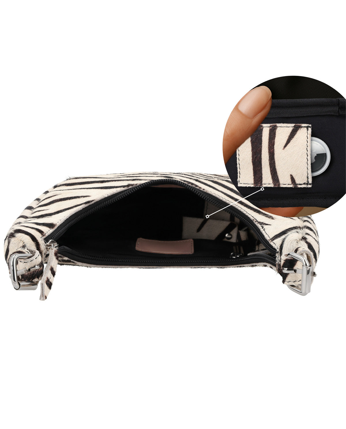 Handtasche mit AirTag-Fach, Schlüsselanhänger und Zebra-Print