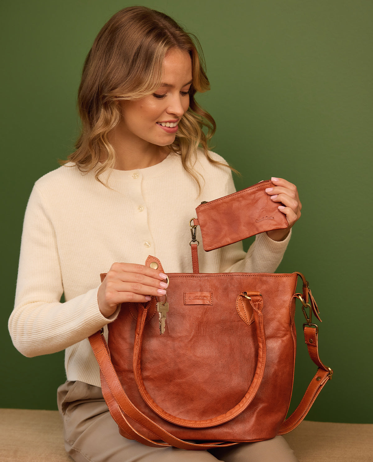Handtasche Umhängetasche Ledertasche Shopper Damen Designed in Berlin Braun Leder