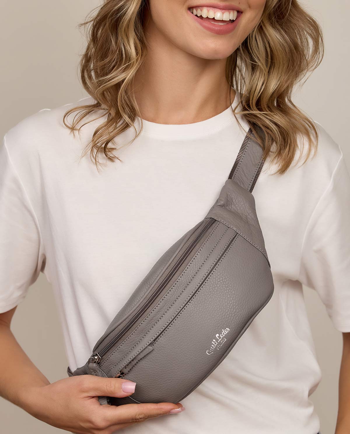 Limited Edition - Gürteltasche Bauchtasche Umhängetasche Tasche Grau Leder