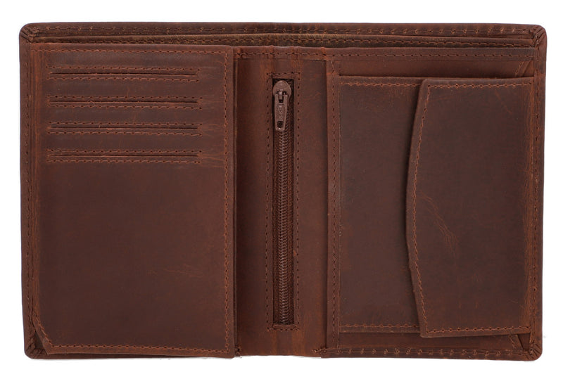 Pflanzlich gegerbt Geldbörse Portemonnaie Brieftasche Geldbeutel Herren Braun Leder