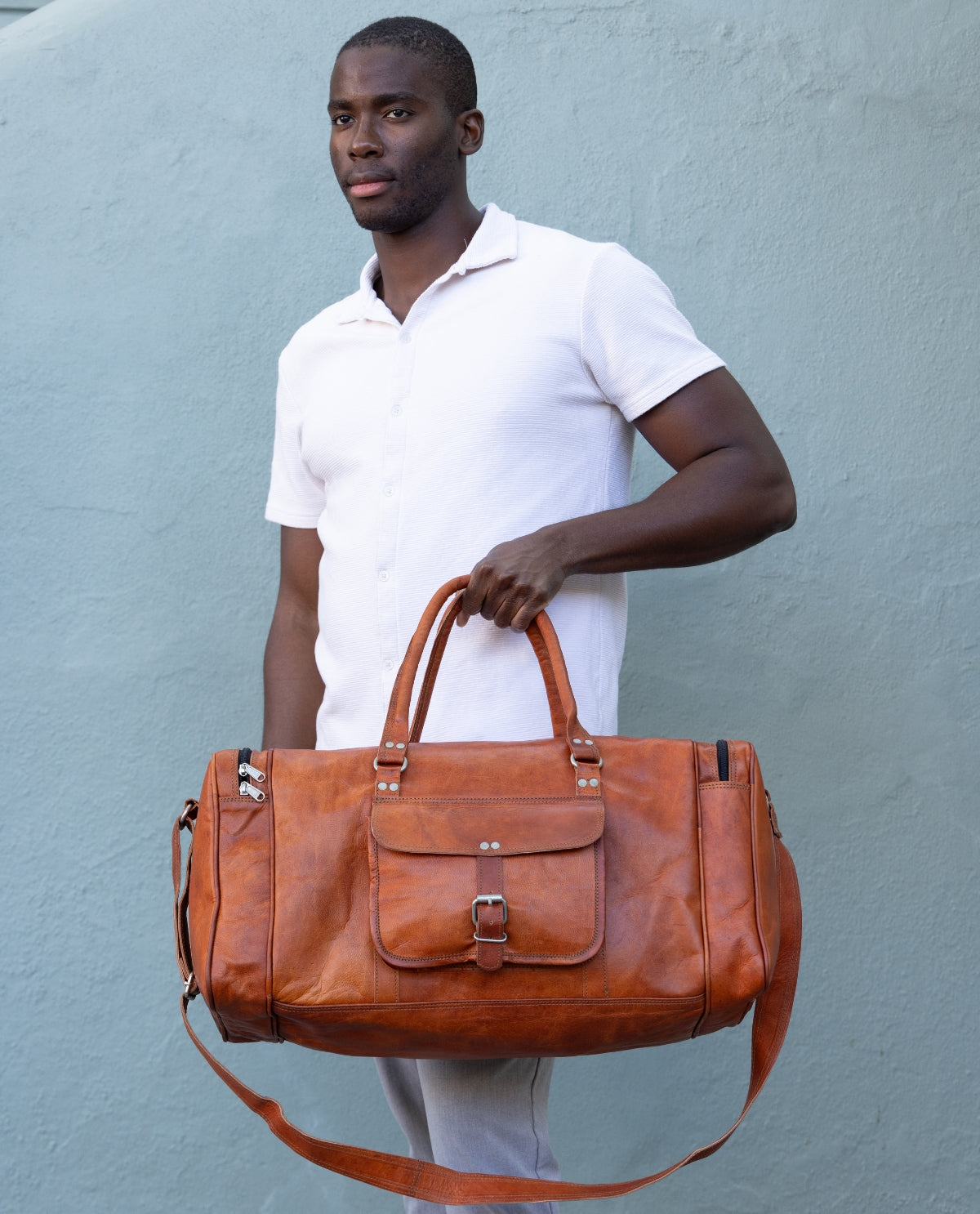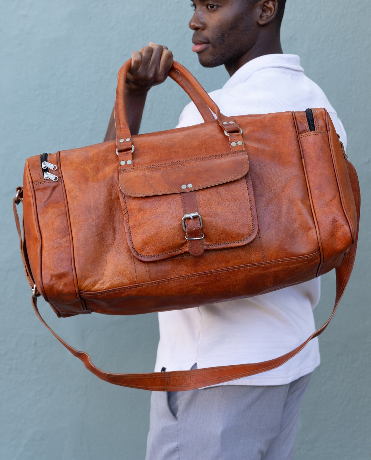 Ob für den Wochenendtrip an die Ostsee oder die nächste große Städtereise – „Harvey“ ist der ideale Begleiter für alle, die gerne unterwegs sind. Inspiriert durch den Berliner Großstadt-Flair, verbindet diese Reisetasche urbanen Charme mit maximaler Funktionalität. Gefertigt aus hochwertigem, vegetabil gegerbtem Ziegenleder, besticht „Harvey“ durch ein zeitloses Design, das auf jeder Reise eine gute Figur macht. Dank der zwei Trageweisen bist du absolut flexibel: Nutze die stabilen Handgriffe oder den zusätzlichen, verstellbaren Schultergurt, um die Tasche bequem über der Schulter zu tragen.