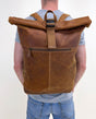 Rolltop Kurierrucksack Rucksack Lederrucksack Vintage Cityrucksack Outdoorrucksack Laptoptasche Unirucksack Wanderrucksack Braun Leder 18L