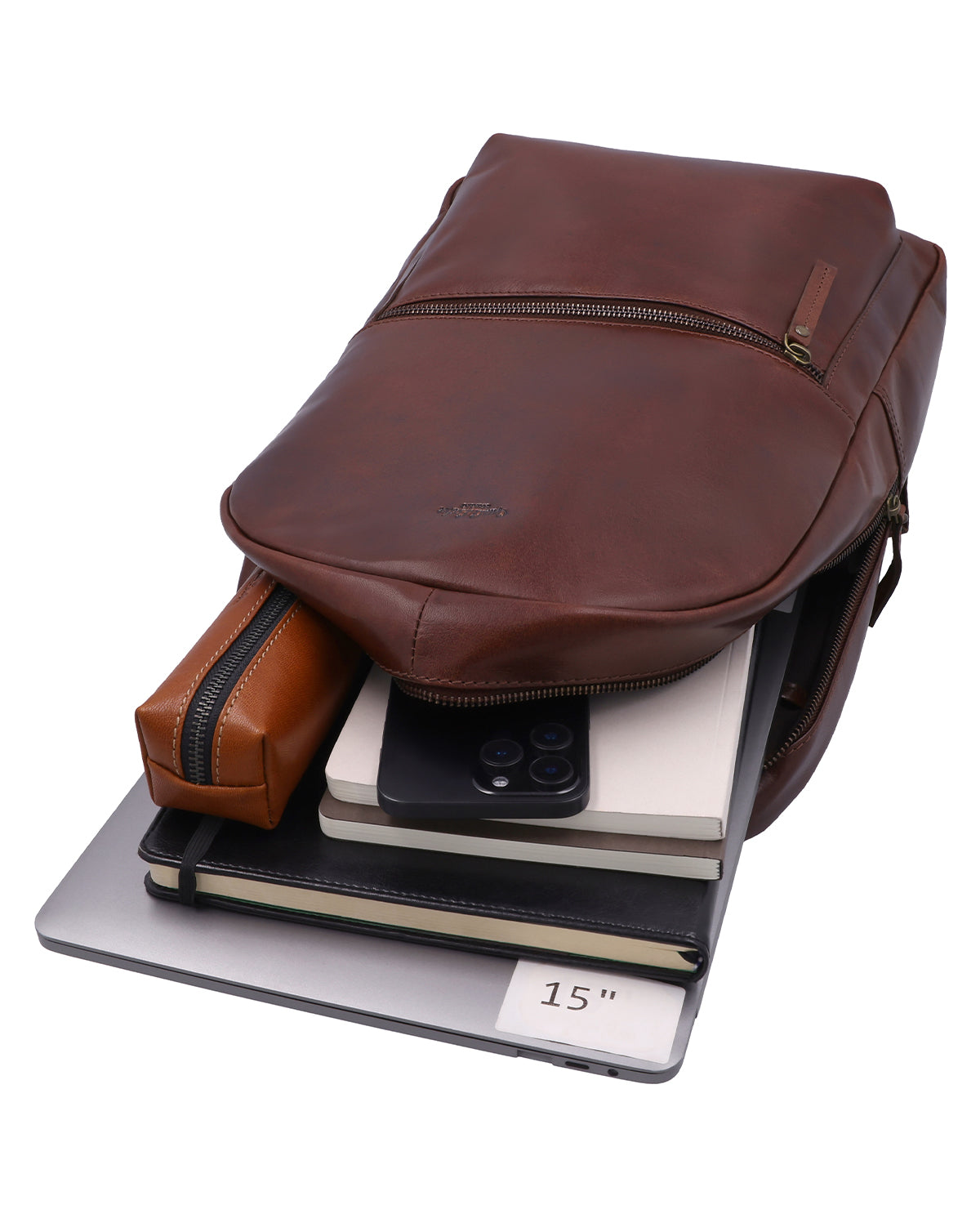 "Klaas" ist der ideale Begleiter für Deinen modernen Alltag – robust, elegant und vollgepackt mit smarten Details. Gefertigt aus hochwertigem Leder und ausgestattet mit einem großen Hauptfach, bietet Dir dieser Rucksack genügend Platz für alle wichtigen Dinge. Das integrierte Laptopfach schützt Dein Gerät zuverlässig, während das separate AirTag-Fach zusätzliche Sicherheit schafft. Dank des hochwertigen Metallreißverschlusses und der durchdachten Innenaufteilung, inklusive Reißverschlussfach und praktischem Schlüsselanhänger, hast Du alles schnell griffbereit. Die verstärkte Form und der atmungsaktive, gepolsterte Rücken sorgen dafür, dass Du jederzeit bequem unterwegs bist.