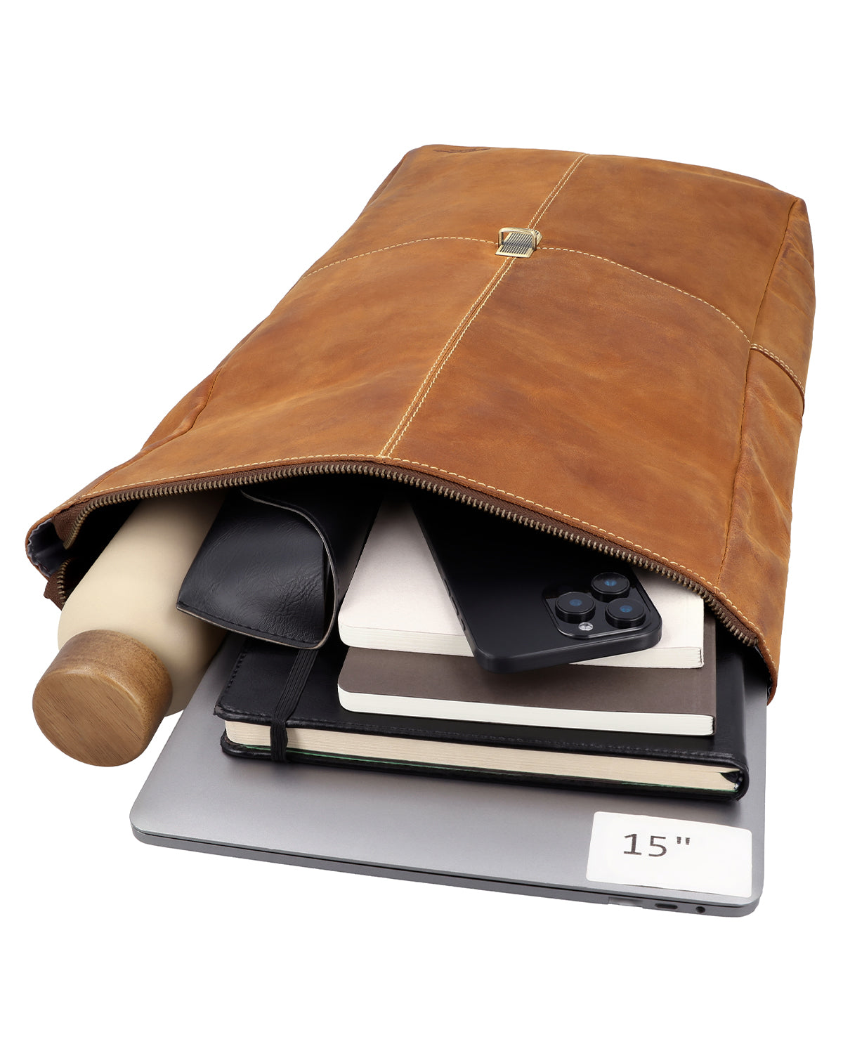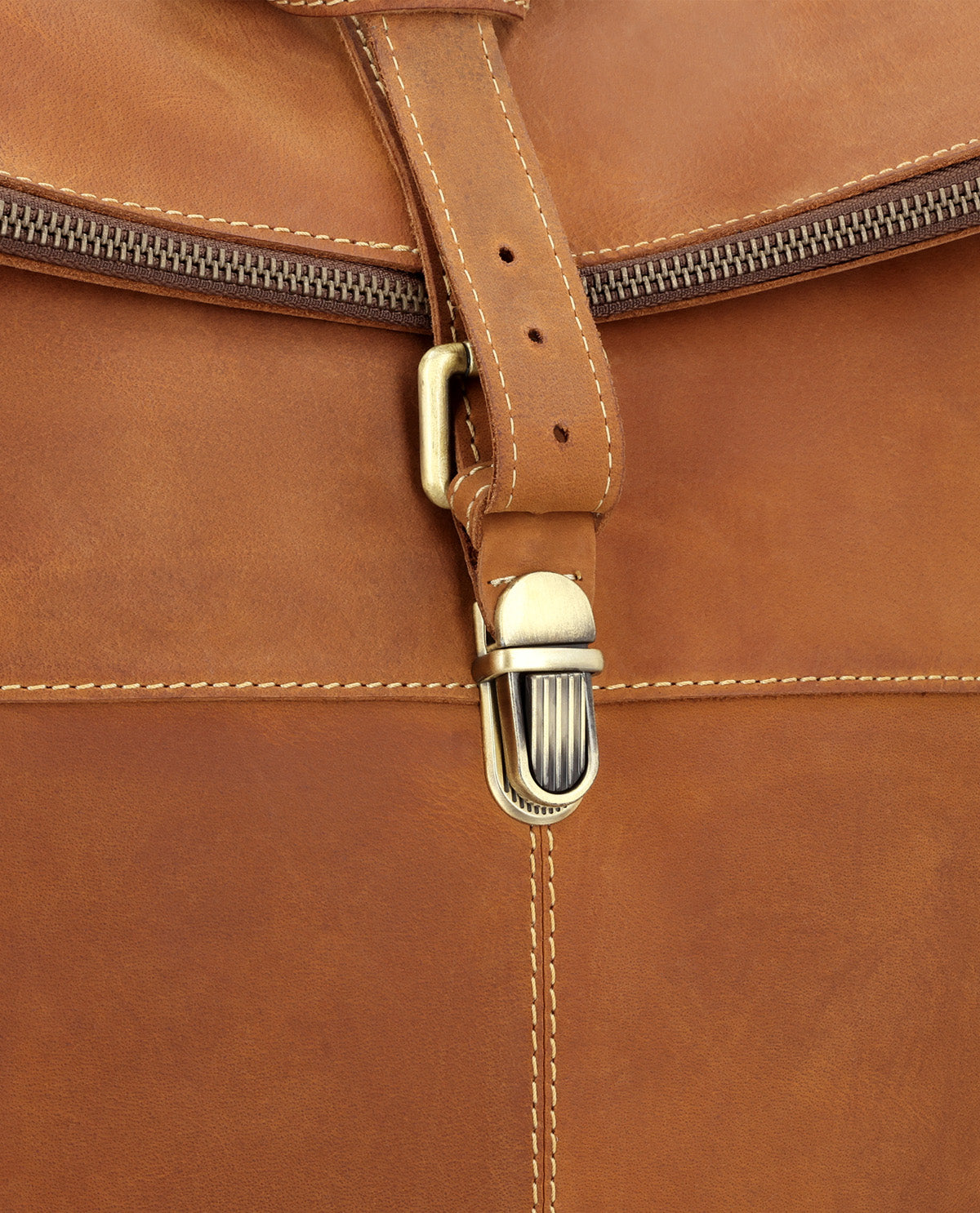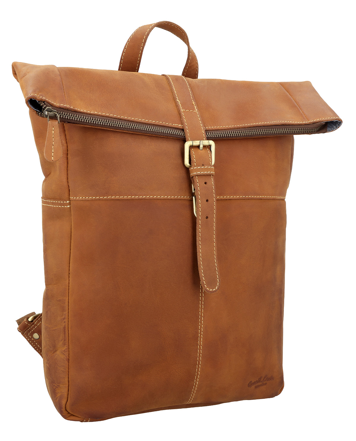 "Henning" ist ein mittelgroßer Rolltop-Rucksack aus widerstandsfähigem Büffelleder, der durch seinen schlanken Schnitt perfekt für das Großstadtgewirr oder die Enge der S-Bahn zur Rush Hour geeignet ist. Die durchdachte Aufteilung bietet Dir ausreichend Raum, um Deine DIN A4-Unterlagen, Dein 15-Zoll-Notebook, mehrere Bücher und eine große Trinkflasche im geräumigen Hauptfach zu verstauen. Zusätzlich helfen Dir ein Steckfach und ein Reißverschluss-Innenfach, Deine Habseligkeiten organisiert zu halten. Sollte mal etwas auslaufen, schützt der helle Innenstoff aus wasserfestem Polycotton das Leder vor Nässe und Flecken. Das seitliche Reißverschlussfach außen bietet Platz für Dinge, die Du schnell griffbereit haben möchtest. Die gepolsterte Rückenpartie und die Innenseite der breiten Schulterriemen sind mit braunem Canvas bezogen und sorgen für eine Extraportion Tragekomfort.