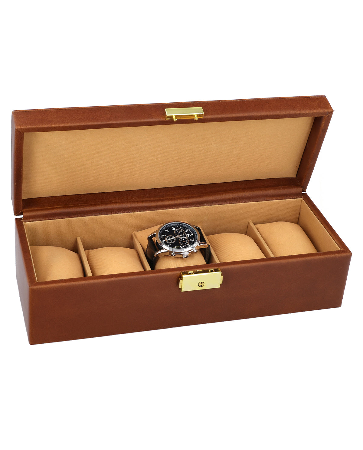 Im Inneren bietet "Marcel" fünf gepolsterte Fächer mit herausnehmbaren Kissen, auf denen Deine Uhren sicher und übersichtlich liegen. Ob sportliche Modelle oder edle Klassiker – jede Uhr findet ihren Platz. Der stabile Verschluss in Goldoptik sorgt dafür, dass alles geschützt bleibt, selbst auf Reisen. "Marcel" ist damit ideal für Sammler, Liebhaber feiner Accessoires oder als stilvolles Geschenk für besondere Anlässe. Eine Box, die Eleganz, Sicherheit und Qualität perfekt vereint – für Uhren, die mehr verdienen als nur eine Schublade.