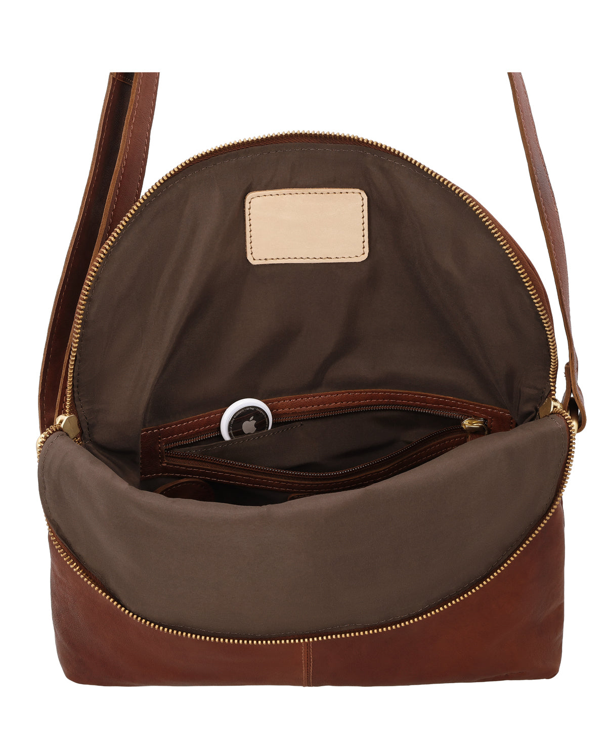 „Gardenia“ ist ein absolutes Multitalent, das zudem durch seinen hohen Style-Faktor besticht. Ein integrierter Schlüsselanhänger und ein verstecktes AirTag-Fach geben Dir unterwegs ein extra gutes Gefühl und helfen Dir, Deine Essentials schnell griffbereit zu haben. Denn die markante Cross-Body-Bag aus weichem honigbraunen Ziegenleder ist ganz ohne Zweifel ein absoluter Hingucker und zugleich die ideale Begleiterin für Deinen Alltag. Der längenverstellbare Trageriemen sorgt dabei für optimalen Komfort und passt sich Deinem Look flexibel an.