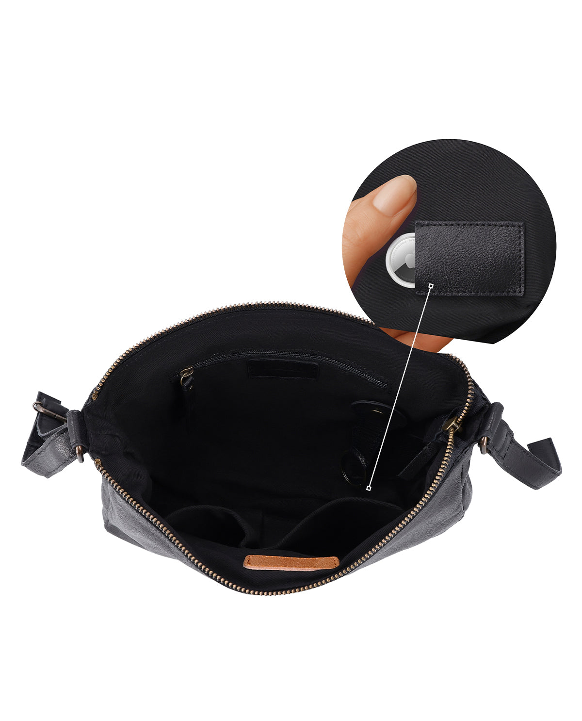 Eine schwarze Handtasche gehört genauso zu den klassischen Must-haves wie das berühmte Kleine Schwarze. Unsere Maisie bietet nicht nur einen dezenten Look, sondern ist die perfekte Ergänzung für jedes Outfit – sei es im Alltag oder für besondere Anlässe. Mit genügend Platz für dein Portemonnaie, Smartphone und Schlüssel sowie einem Notizbuch oder Kosmetiktäschchen, bietet sie alles, was du brauchst. Damit deine Schlüssel nicht lange gesucht werden müssen, ist Maisie zusätzlich mit einem praktischen Schlüsselringhalter ausgestattet. Dank seitlicher Steckfächer und eines zusätzlichen Reißverschluss-Innenfachs behältst du stets die Übersicht. Für extra Sicherheit unterwegs verfügt Maisie außerdem über ein geheimes AirTag-Fach, damit du deine Tasche jederzeit leichter wiederfindest. Maisie sorgt dafür, dass du immer gut organisiert und stilvoll unterwegs bist, ohne Kompromisse bei der Funktionalität einzugehen. Inspiriert durch den Berliner Großstadt Flair, spiegelt sie urbanen Chic wider.