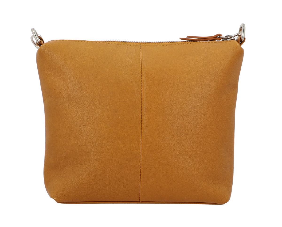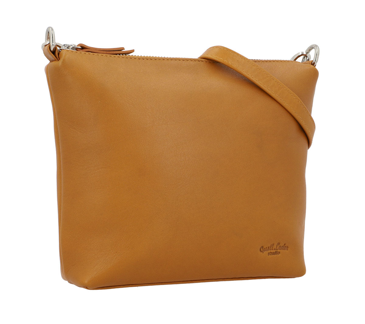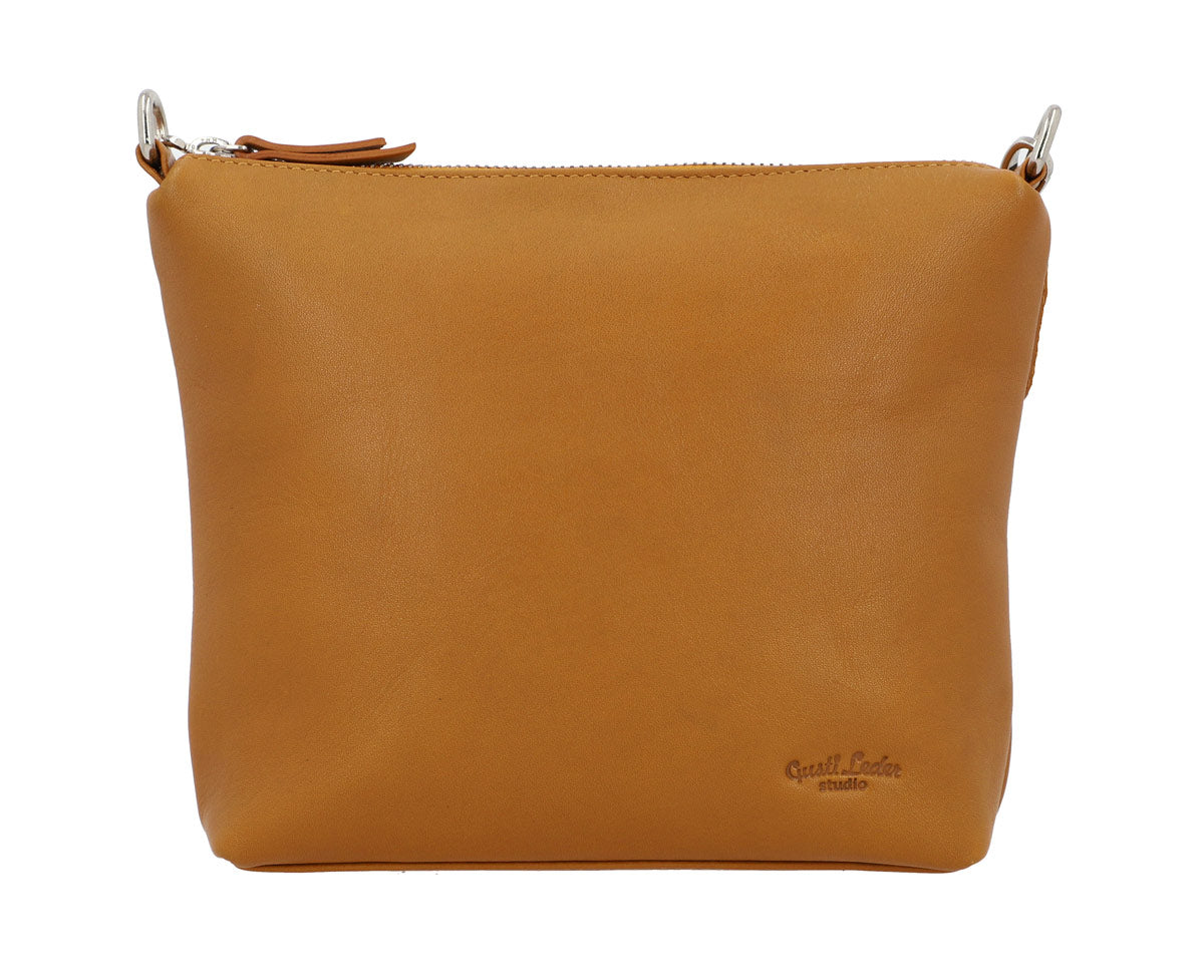 "Luisa" ist eine Tasche, wie es aktuell keine zweite gibt. So bezaubert sie durch das hochwertig verarbeitete Rindsleder im sommerlich-sonnigen Gelb und überrascht mit ihrem Platzangebot. So finden im kompakten Hauptfach von "Luisa", das mit farblich auf das Leder abgestimmtem Kontrast-Innenfutter ausgekleidet ist, Deine Habseligkeiten wie Smartphone, Make Up-Täschchen, Brillenetui, Taschenkalender bis DIN A6 usw. ganz ohne Probleme ihren Platz. Ein zusätzliches Reißverschluss-Innenfach bietet Dir derweil zusätzlichen Raum für Deine Schlüssel oder ein kleines Ausgeh-Portemonnaie. Der abhnehmbare und längenverstellbare Tragegurt mit glänzend-silbernen Beschlägen sorgt derweil für den nötigen Tragekomfort, während ein weiter Reißverschluss Deinen Tascheninhalt vor Feuchtigkeit oder potenziellen Langfingern schützt.