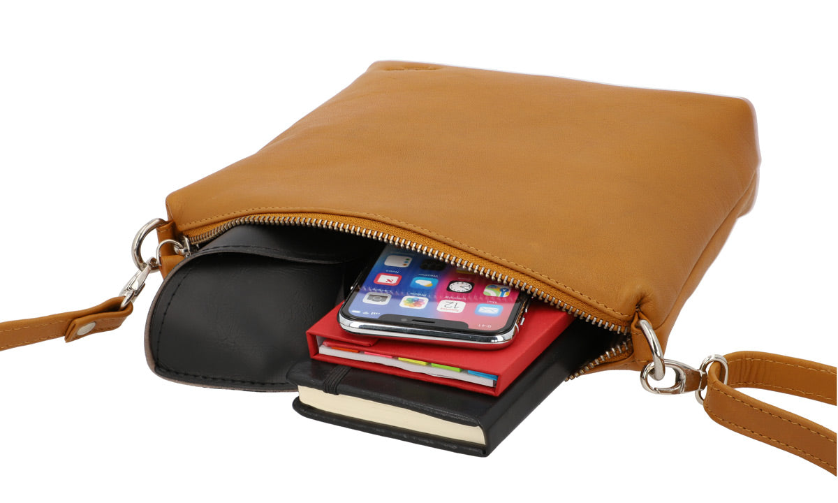 Umhängetasche mit Reißverschlussfächern und längenverstellbarem Trageriemen