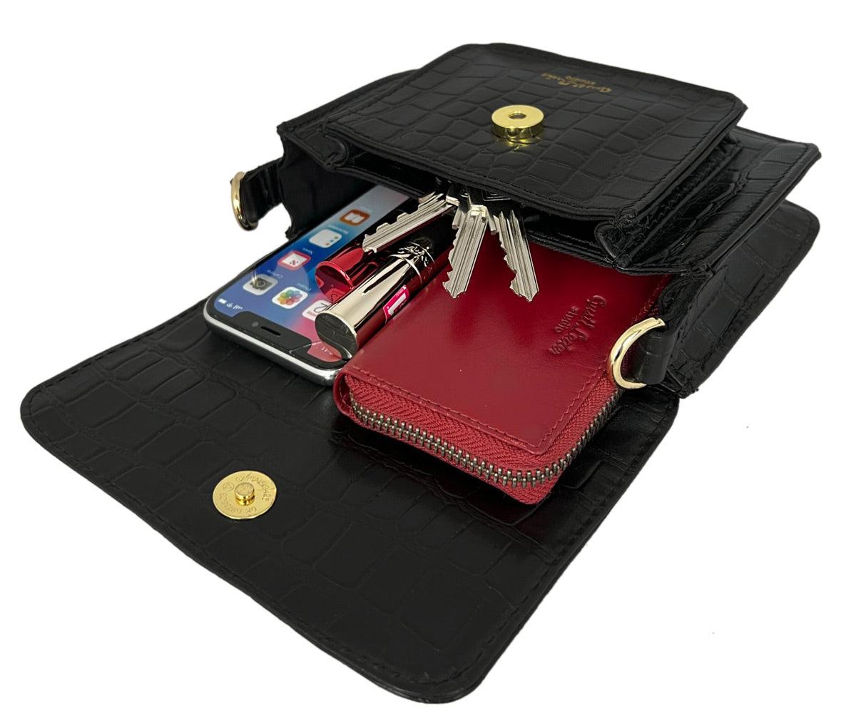 Du suchst nach einer kleinen Umhängetasche, die dich stiltechnisch nicht hängen lässt? Genauso aber im Alltag jedes Outfit aufwertet? Ob als kleines Accessoire oder das ITs Piece deines Looks die deinen Auftritt unterstreicht - "Anouk" glänzt in jeder Rolle! Ihre schmale Form macht sie zu idealen Umhängetasche. Zum Cocktail mit den Freundnen oder als Eye Catcher für deinen Abendlook! Die trendy Kroko Optik gepaart mit dem hochwertig verarbeitetem Rindsleder macht sie zur idealen Begleitung!