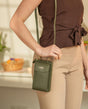 Umhängetasche Handytasche Ledertasche Schultertasche Grün Leder