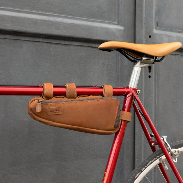 Our leather straps are equipped with buckles or velcro fastenings so that they can be effortlessly secured to different parts of your bike - whether it’s handlebar, saddle and frame (top tube and down tube).