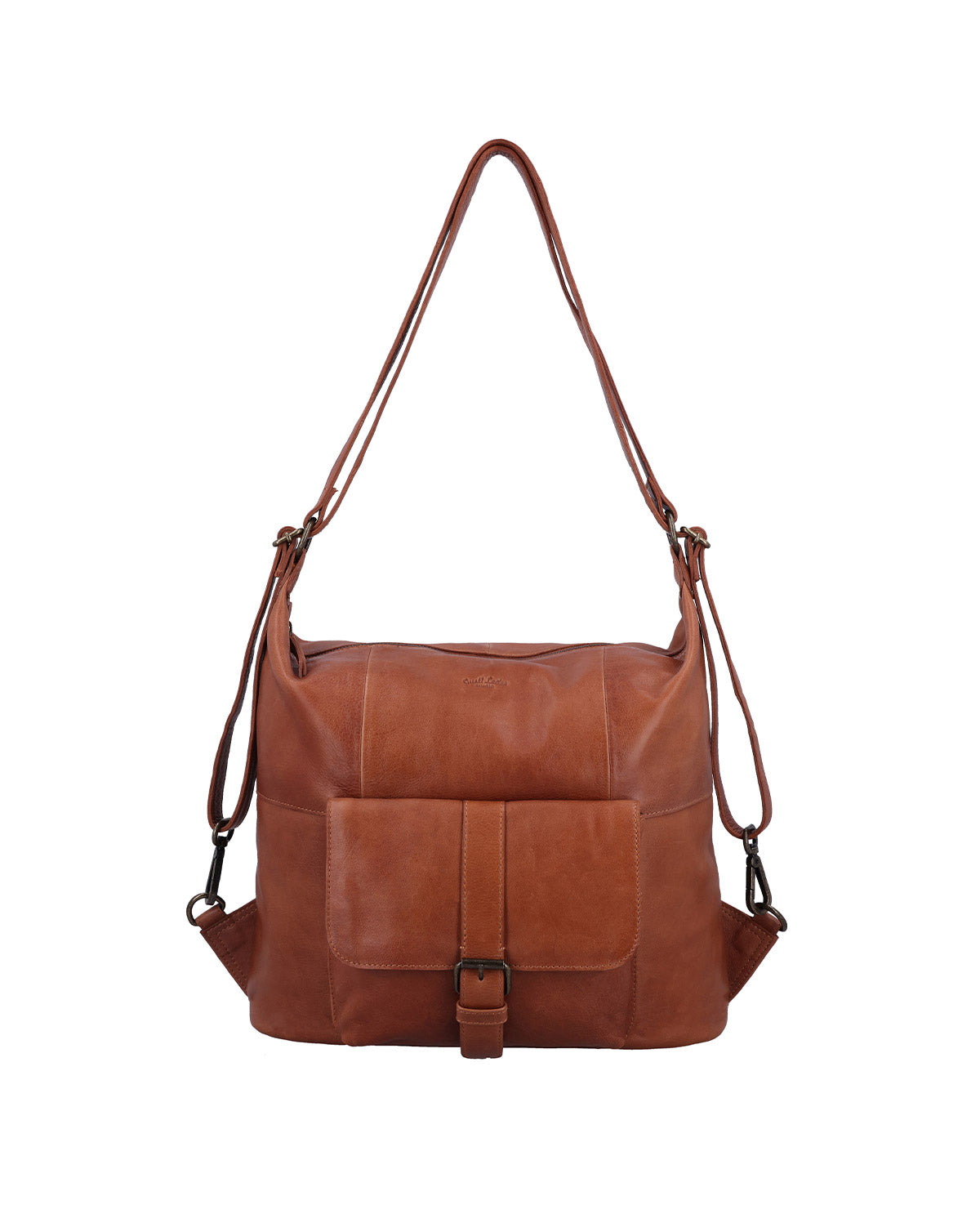 2-in-1 shoulder bag backpack handbag leather rucksack women brown leather